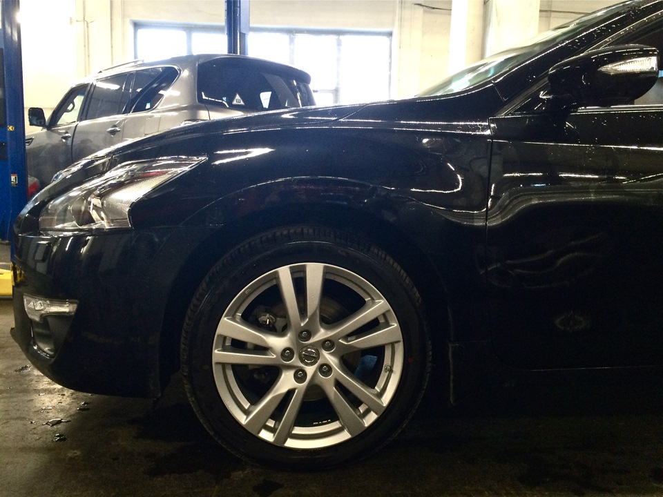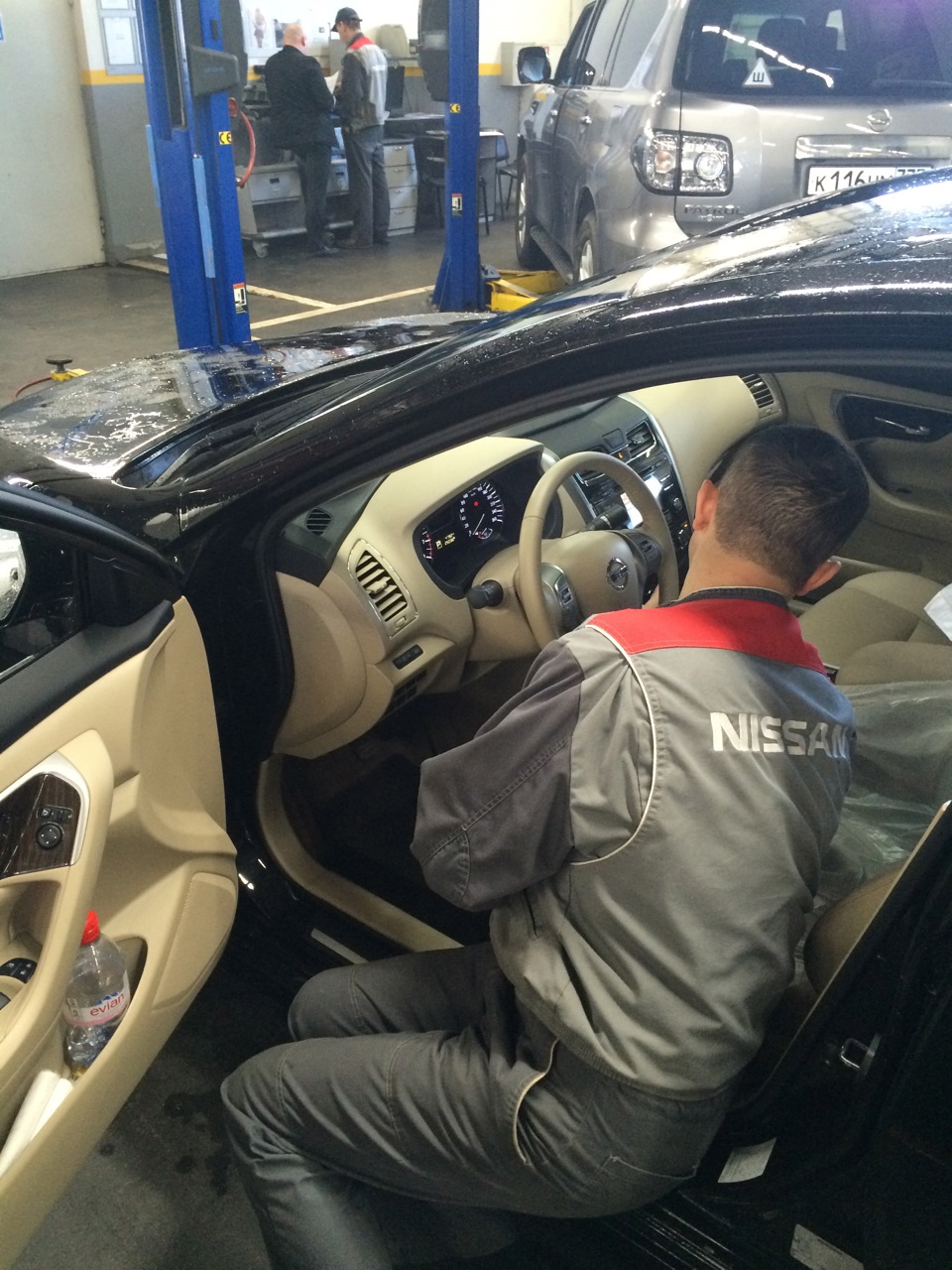 Ниссан Теана L33 в комплектации Лакшери и Лакшери "+" идут на R16 (2014 год, с 2015 R17) без датчиков давления воздуха в шинах, но с системой доступа Intelligent Key (чип-ключ), блок приема которой отвечает и за датчики давления воздуха, как выяснилось. Купил на лето комплект оригинальных колес R18 в сборе у Zalia, с датчиками давления воздуха в шинах 40700-3JA0A за 37 000 рублей. Отбалансировал и установил за 1400 рублей. Прописал датчики за 1500 рублей. "Помыли" машину техмойкой за 100 рублей.