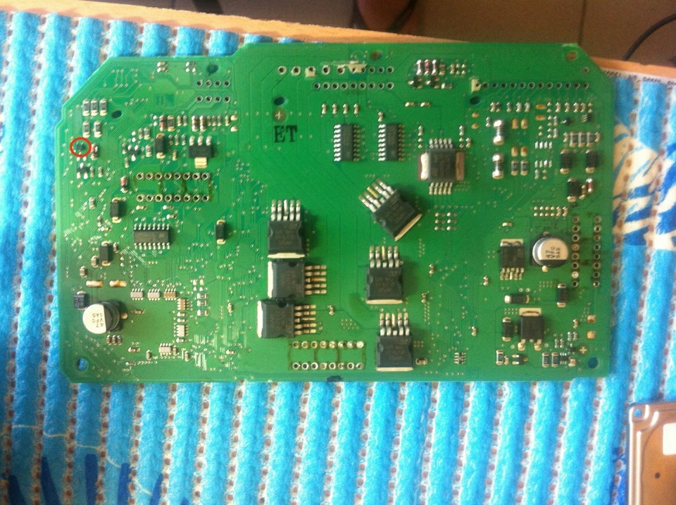 Левый кружок, низ — резистор с маркировкой "160". Вверху в левом нет ничего. В правом кружке конденсатор керамика, маркировки нет.