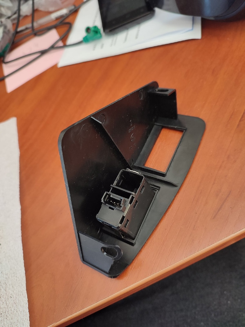 Для установки вместо кнопки разъёма USB AUX, необходимо надфилем чуть-чуть пропилить пазы, так как металлические крепления по краям не могли пройти свободно и зафиксироваться. После проделанной работы, разъём свободно заходит в отверстие под кнопку площадки (накладки) ASC.