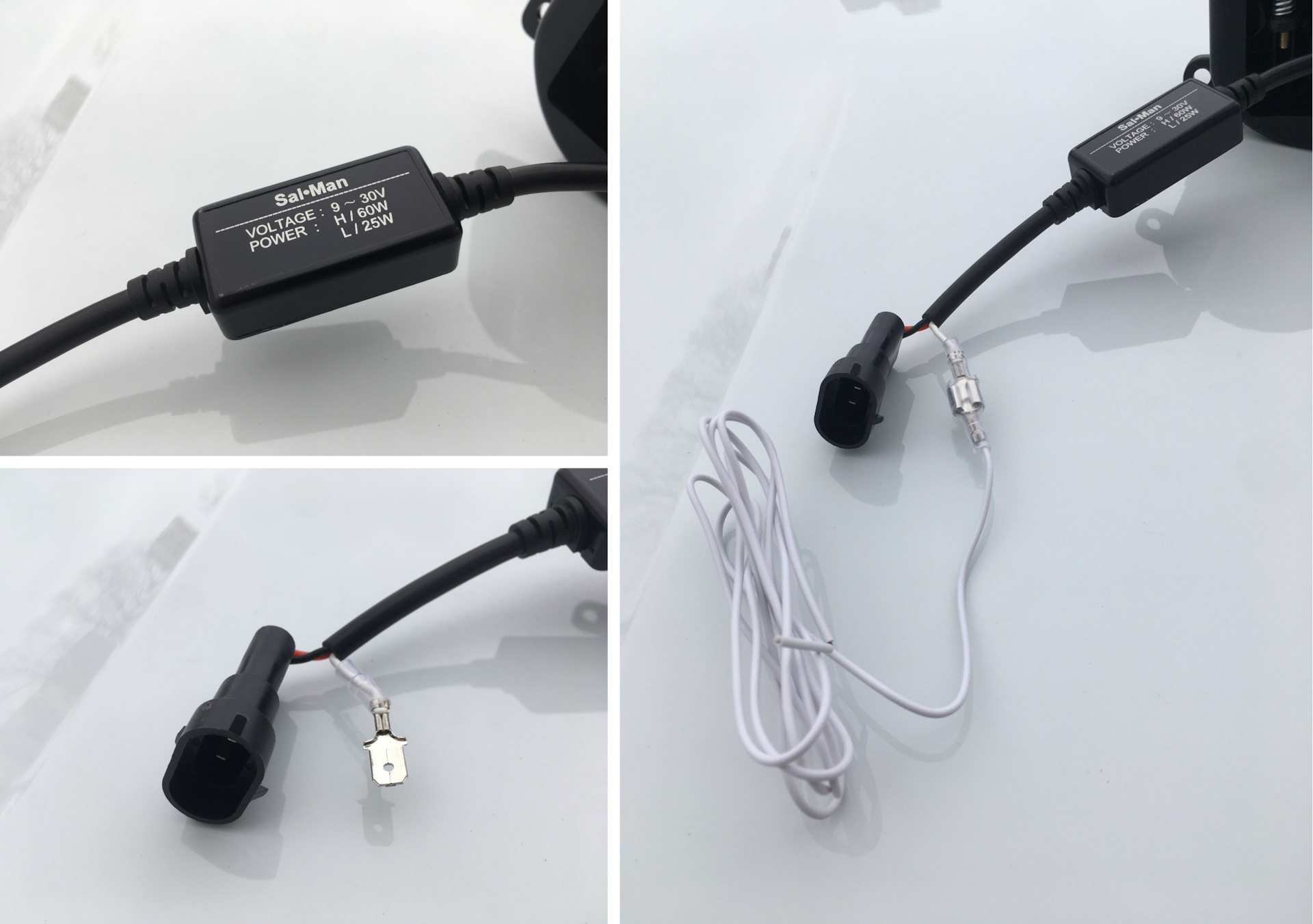 — Светодиодный драйвер вынесен из корпуса. Разъем для подключения — герметичного типа, а пин дальнего света сделан отдельно.