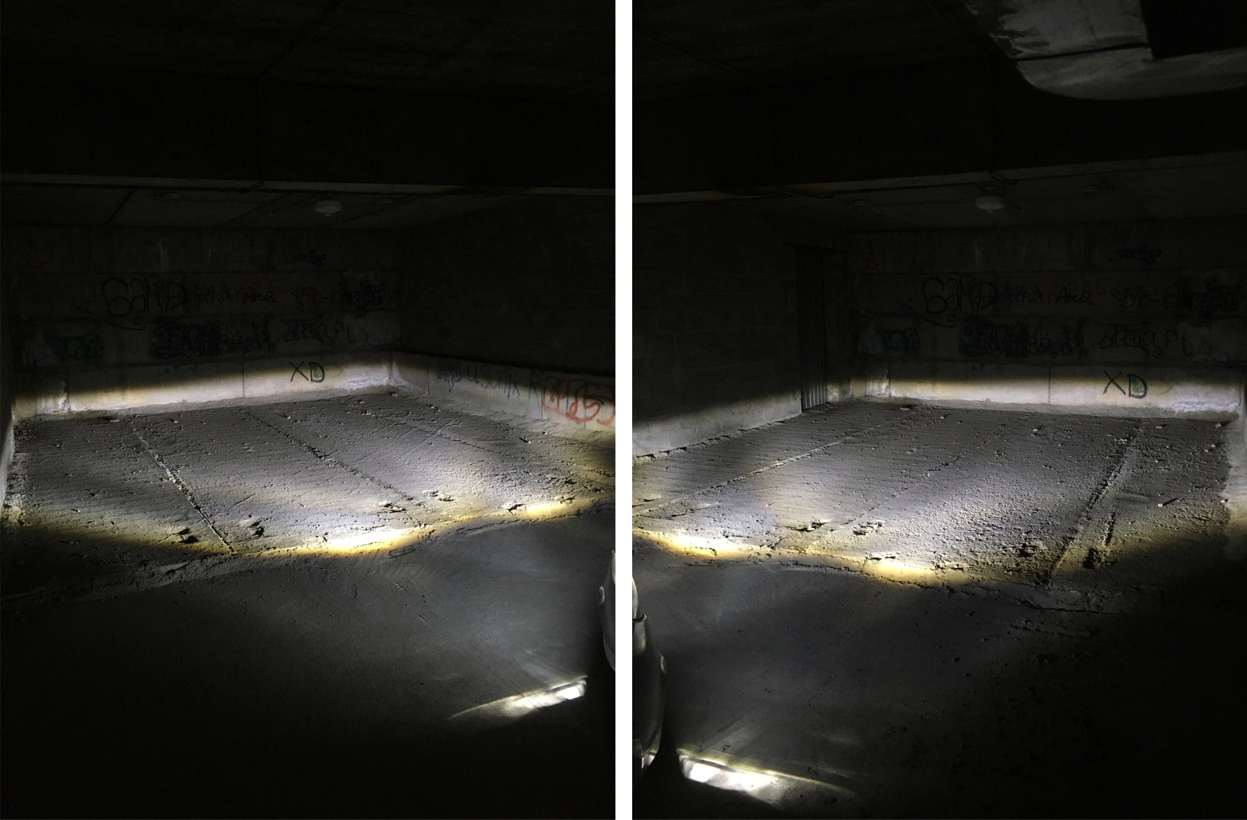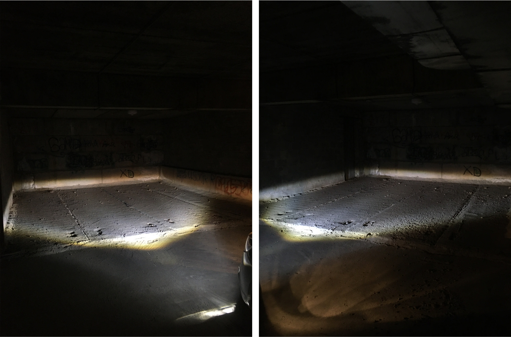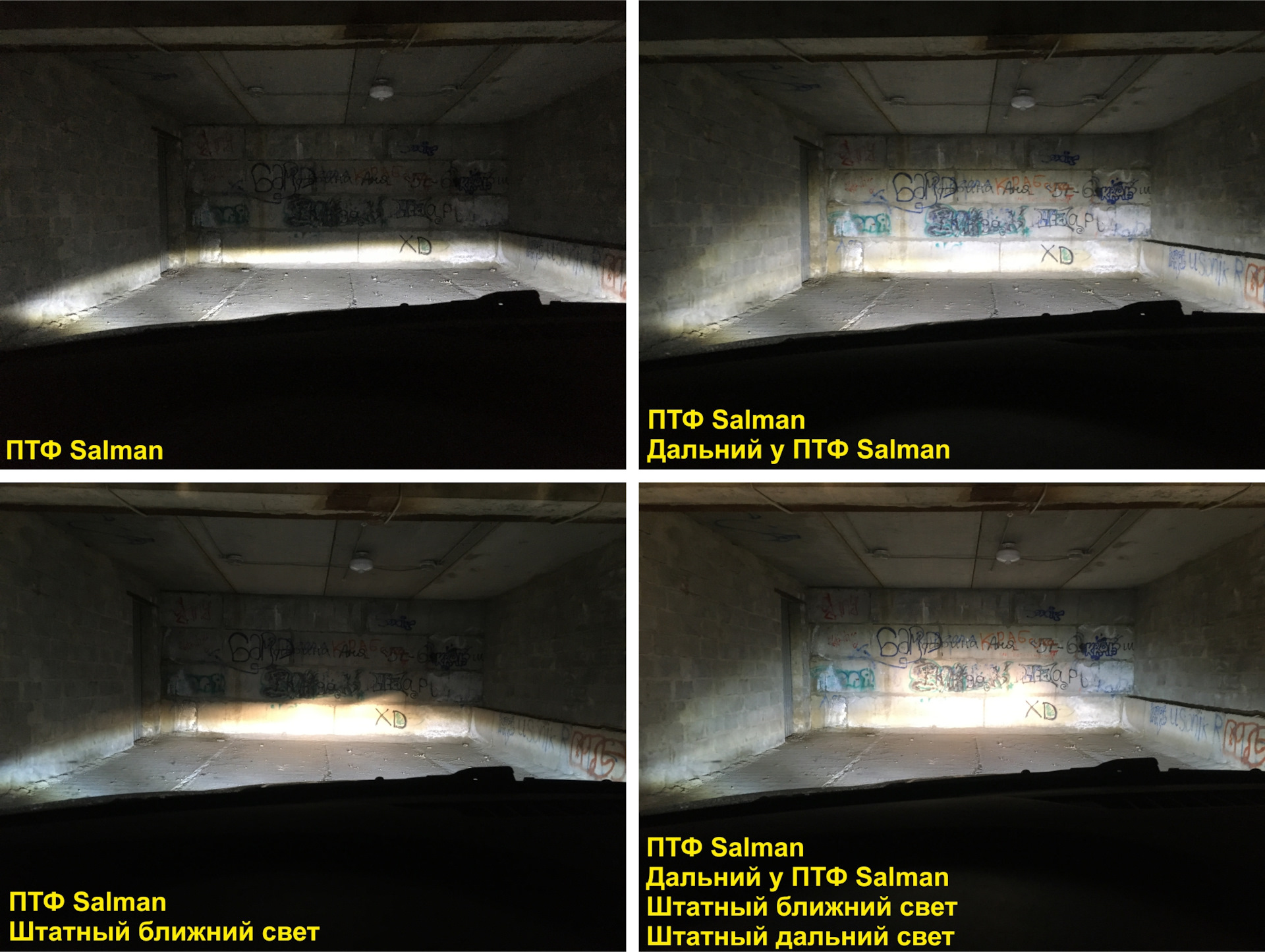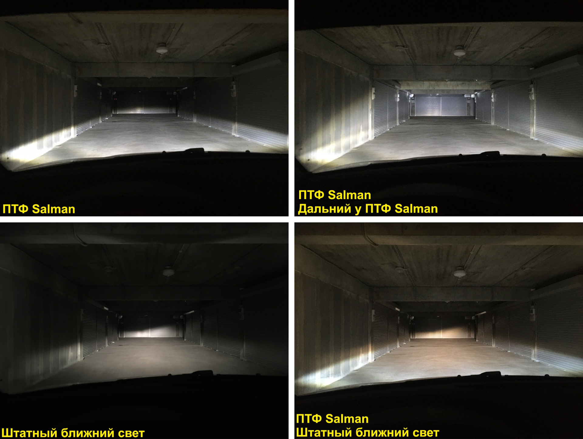 Глазами встречного транспорта. Для сравнения добавил фото со штатными ПТФ Valeo и лампой H16 (мощностью 19 Вт).