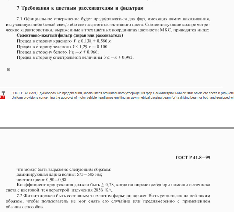Вижу, что лишь под передние противотуманки соответствует белый либо желтый селективный. Под ближний и дальний белый