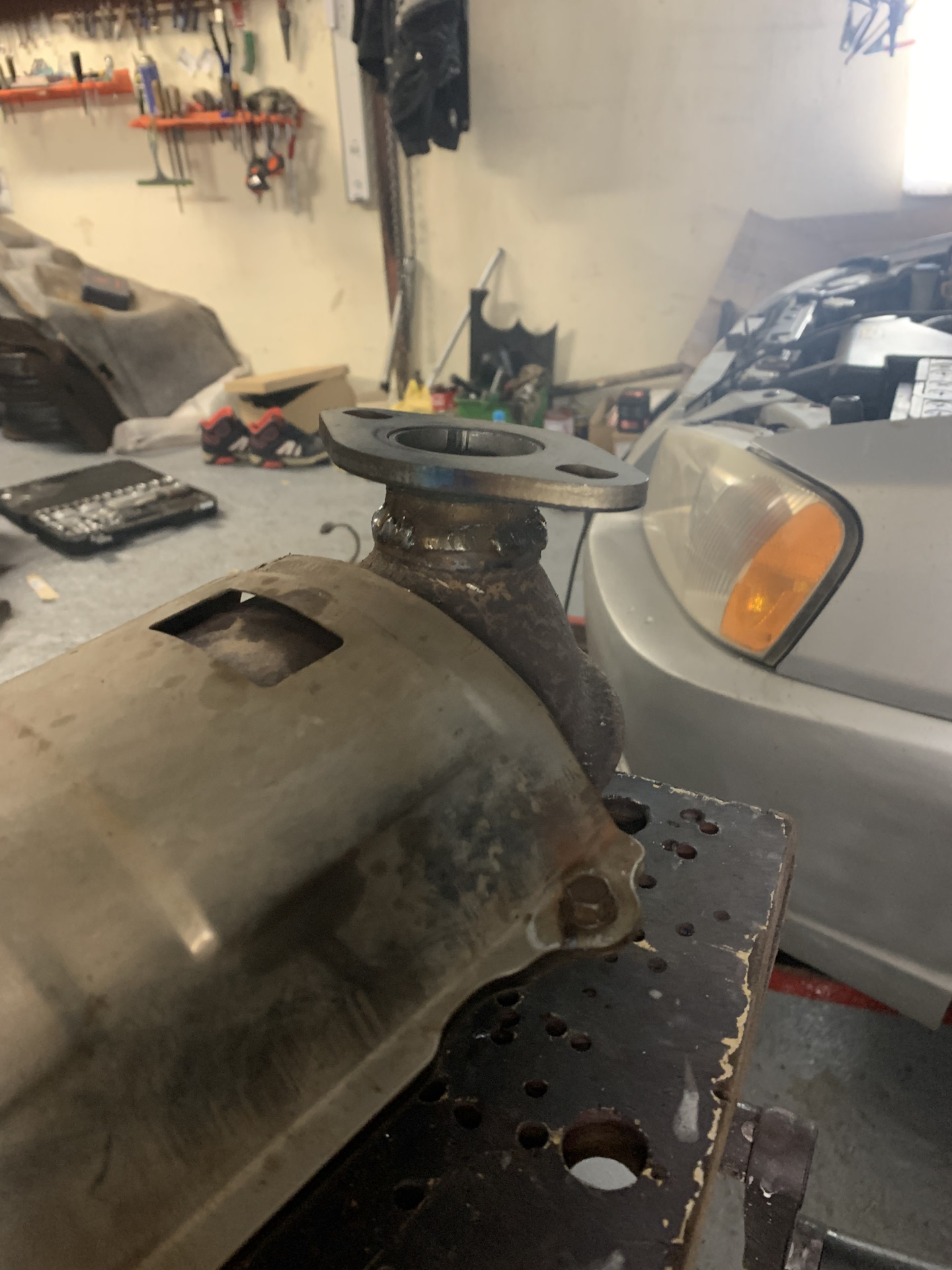 На приемной трубе тоже переварили, а на коллекторе оставили, в итоге сечет теперь оттуда. Вопрос банальный. Там не чугунина? А то нагнали мне страха что там может быть чугун и тогда попадос будет с приварками фланца.