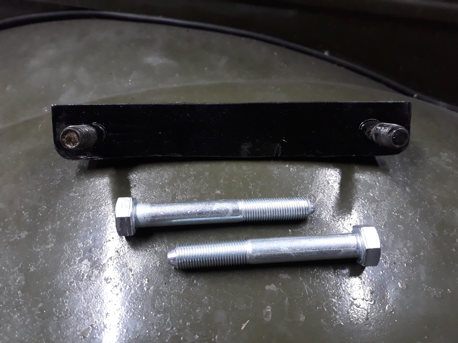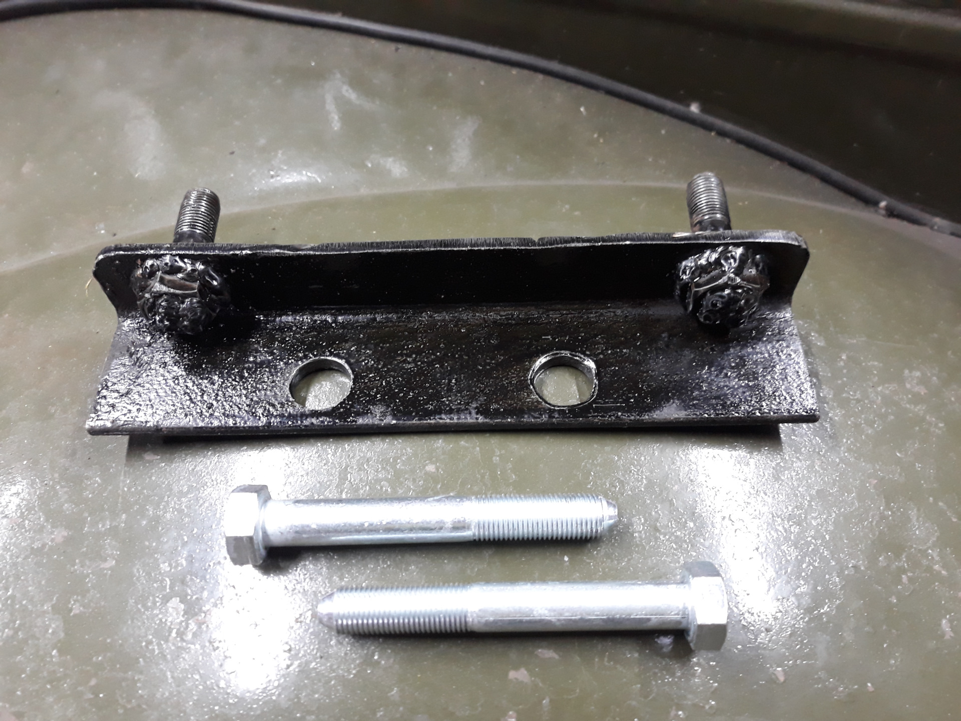Всем привет. Взамен 4-ехступой КПП от Волги приобрел укороченную 5-ти КПП от Газели, теперь нужно думать, как соединить КПП и родную РК! Просмотрев статью www.drive2.ru/l/518029956698080193/, решил делать. Для крепления самой КПП пришлось выкрутить нижние шпильки с колокола, сделать из уголка 40х40 площадку длиной 220 мм со шпильками. Долго примерял, сделал отверстия в уголке, после примерки понял, что лучше подрезать со стороны шпилек (упиралась в траверсу!). Шпильки приварил с обратной стороны. Просверлил колокол сверлом на 12 мм, болты взял от ВАЗ классики от задней подвески, но после примерки понял, что они короткие. Приобрел другие болты на 12 мм от ВАЗ-0809, они длиннее. Под болты в колоколе подложил шайбы от ГБЦ ВАЗ, сделал спил под углом, т.к. колокол имеет наклон, чтобы шляпка болта легла ровно! Установил КПП, все протянул.