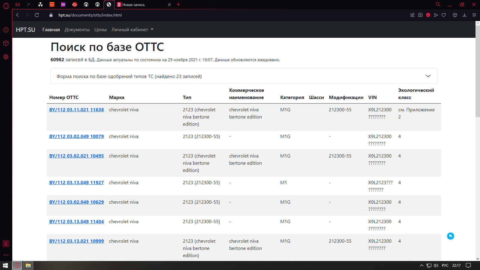 Изучив немного сайт, понял, что надо тыкать Одобрений типа транспортных средств