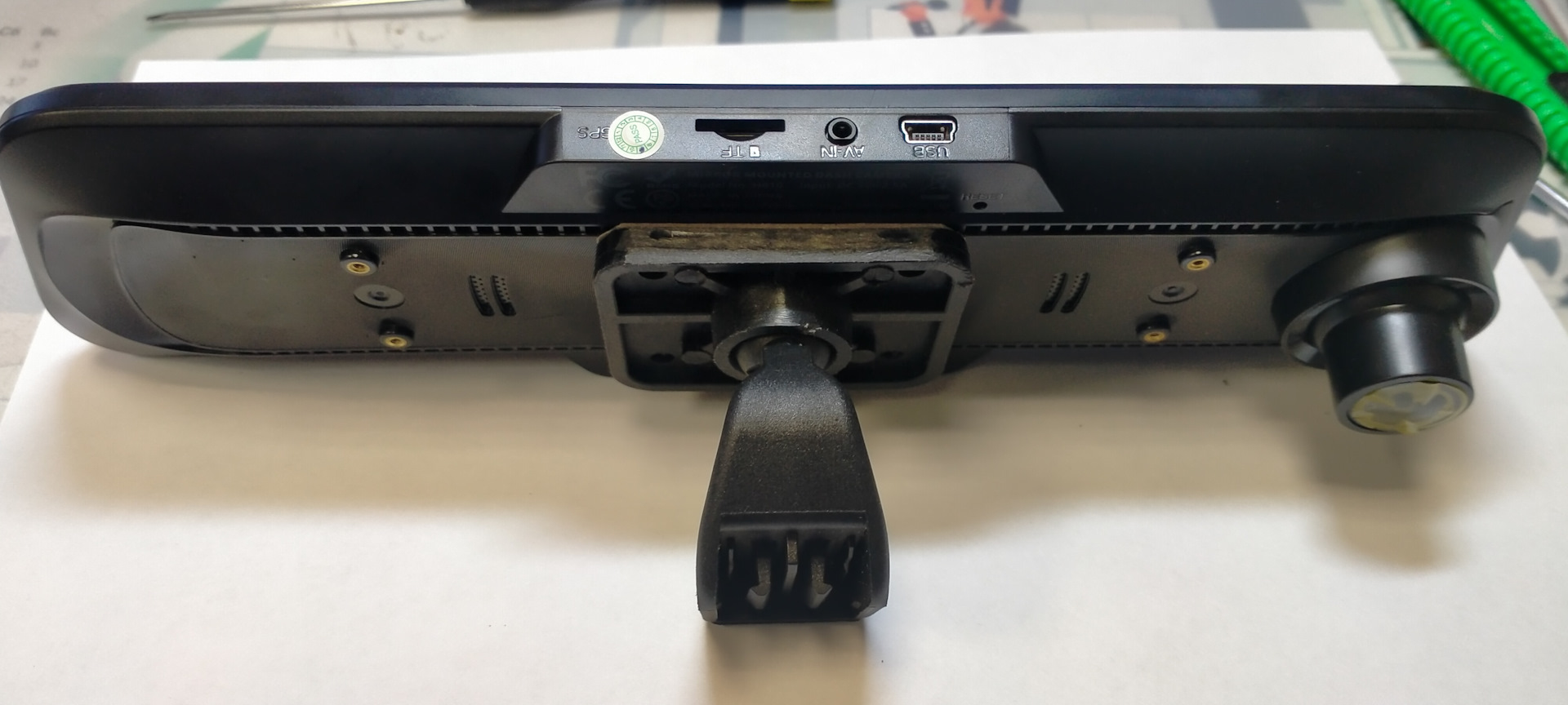 Всё просто покупаешь салонное зеркало с разборки или самый дешевый аналог и из него делаешь кронштейн для регистратора.