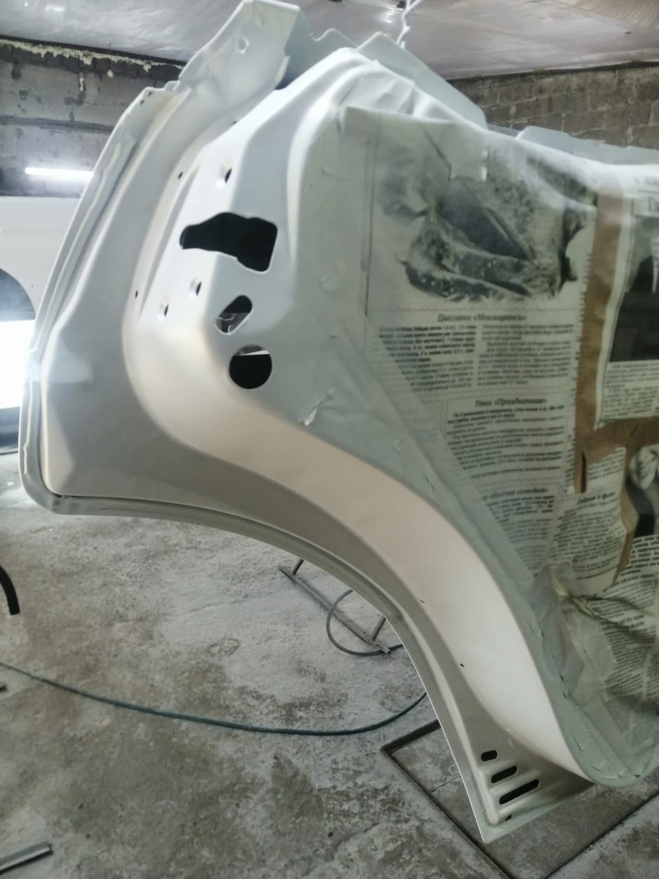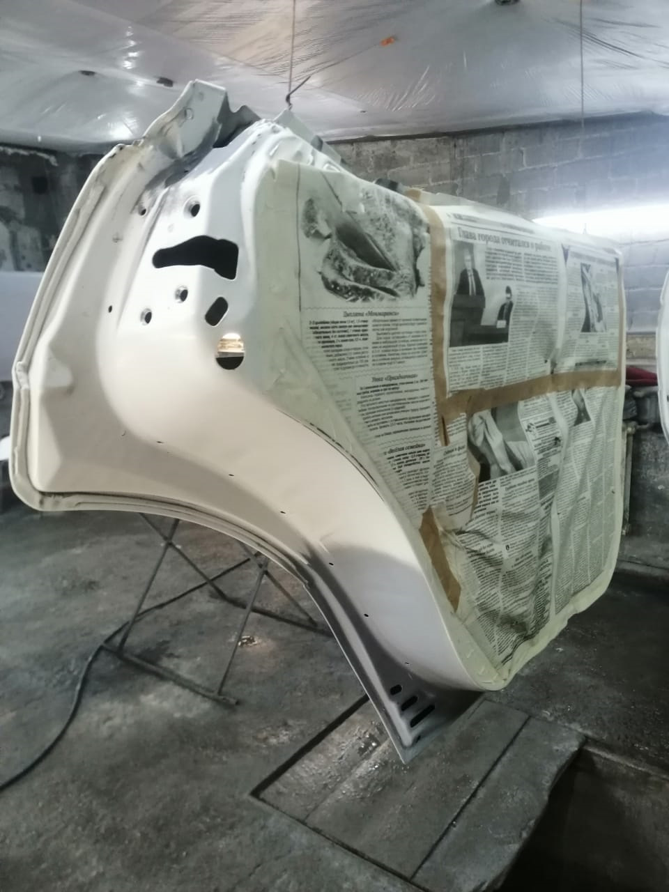 И так, постараюсь кратко изложить и по существу, лето прошло в подготовке авто под покраску, куда входит сварка проблемных мест, шпаклевка и грунтовка и самое главное покраска, кузов на данный момент только подготовлен, ждет своего часа. Перечислю, что на данный момент попало под покрасочный пистолет маляра, немного остановлюсь на этом моменте, почему не сам сам красил, потому что покраска была в три слоя (белая база, желтые "блестки" и матовый лак) не стал я рисковать, а доверился профессионалу(…а если он еще и твой сосед по гаражу)) ), за что ему огромное спасибо, а вообще это его предложение таким методом (вариантом) "закатать" авто, потому что акрил, по его мнению, это прошлый век) и держится меньше, мое дело меленькое, и в тоже большое, подготовить и приобрести материал для покраски. Далее фото подготовленных деталей после покраски…