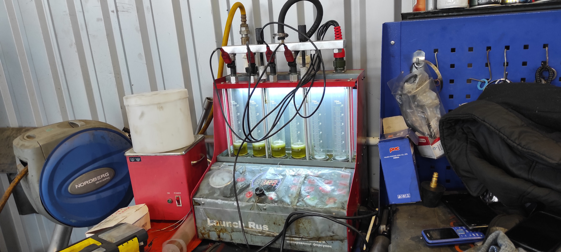 Снятие ресивера заставило немного помучаться но спустя час времени, ресивер успешно снят, сразу стало понятно, что ремкомплект на форсунки купленный заранее был приобретен не зря, и скорее всего там был подсос воздуха, резинки были в плохом состоянии. После снятия форсунки отправились на стенд для чистки. Стенд показал, что с форсунками все ок, распыл практически одинаковый, две льют чуть сильнее чем две другие, но не критично.