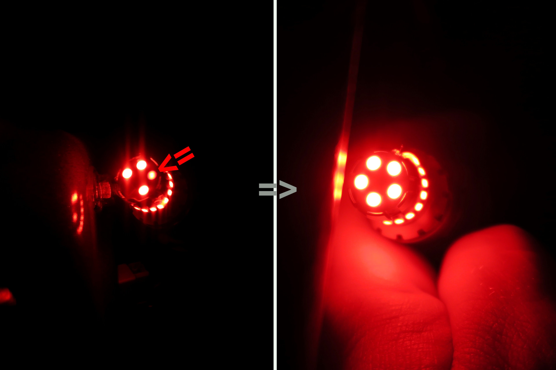 В процессе последней регулировки сход/развала как всегда была зафиксирована педаль тормоза в нажатом состоянии, где то около 15-17 мин., тем временем светодиоды стоп-сигнала не выдержали и стали изредко "стробоскопить" от столь продолжительной работы…