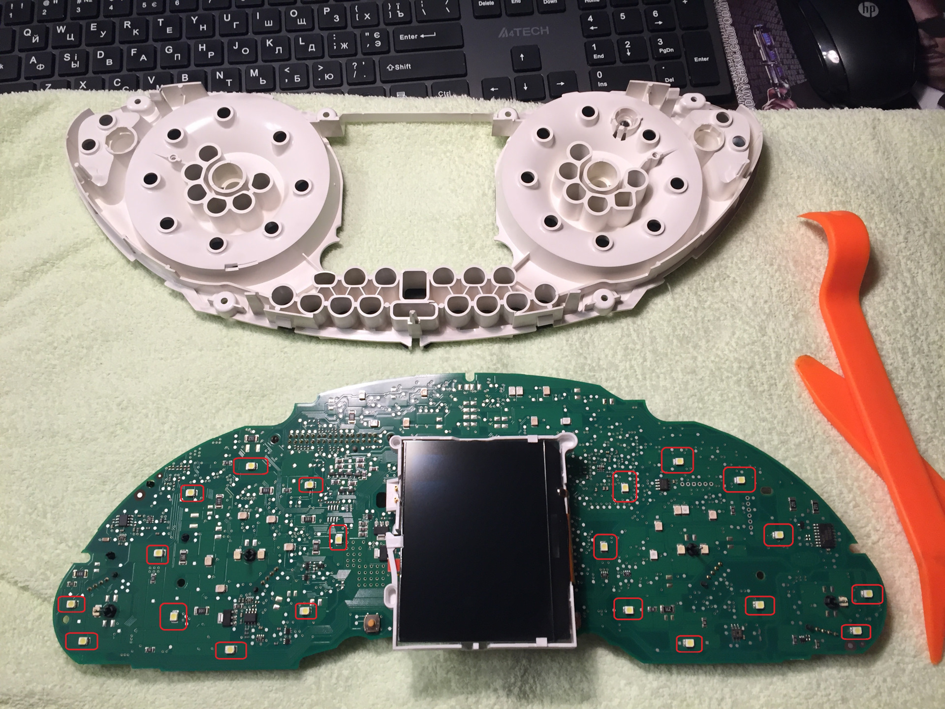 Эти танцы с бубном я повторял 5 раз, и пришел к выводу, что скорее всего, проблема возможно с какими-то диодами, т.к. если на них понажимать они загорались и иногда загорались соседние. Принято решение заменить все 20 диодов подсветки. Начались поиски …