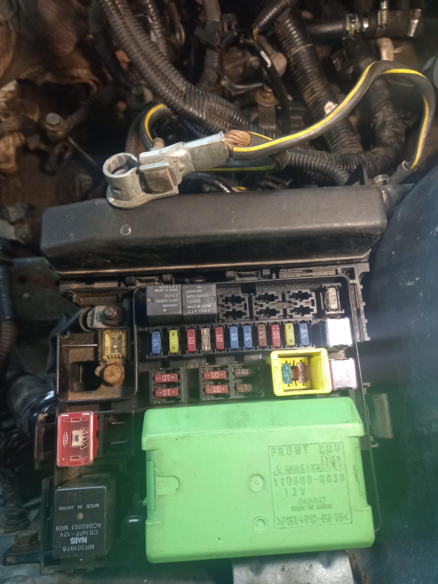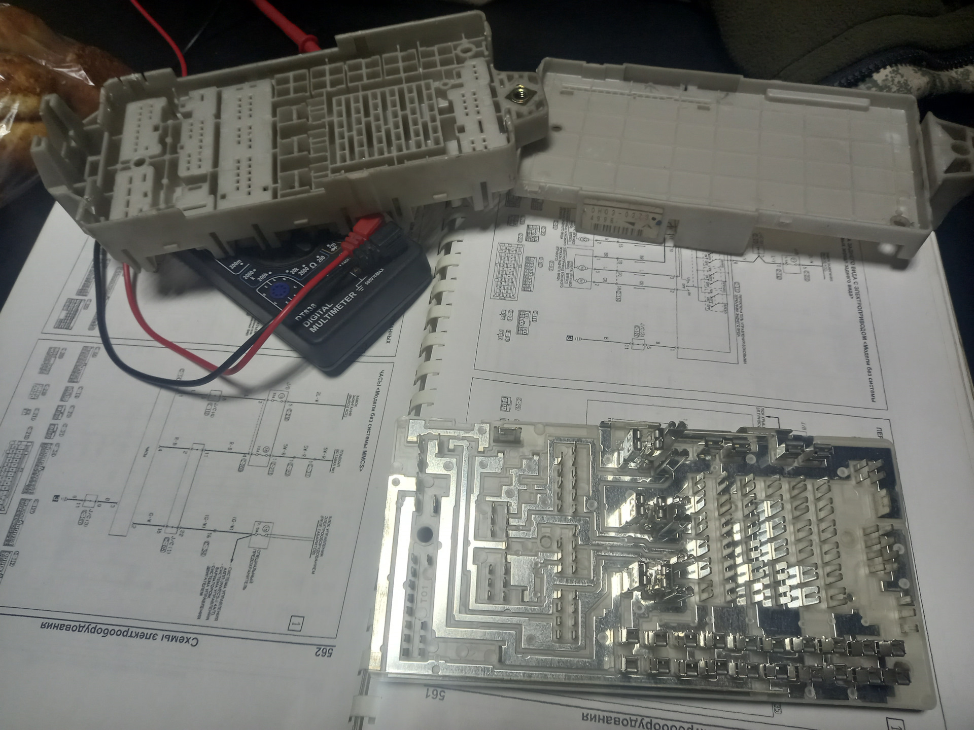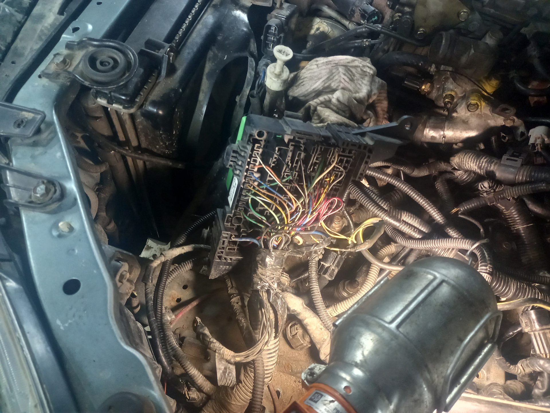 Логика работы туманок: Плюс с 1 преда подкапотного блога идет на управление включения реле, от кнопки приходит минус на включение реле. Реле замыкается и пропускает плюс с шины блока на сами лампы туманок. Вскрываю подкапотный блок и вижу сопли…