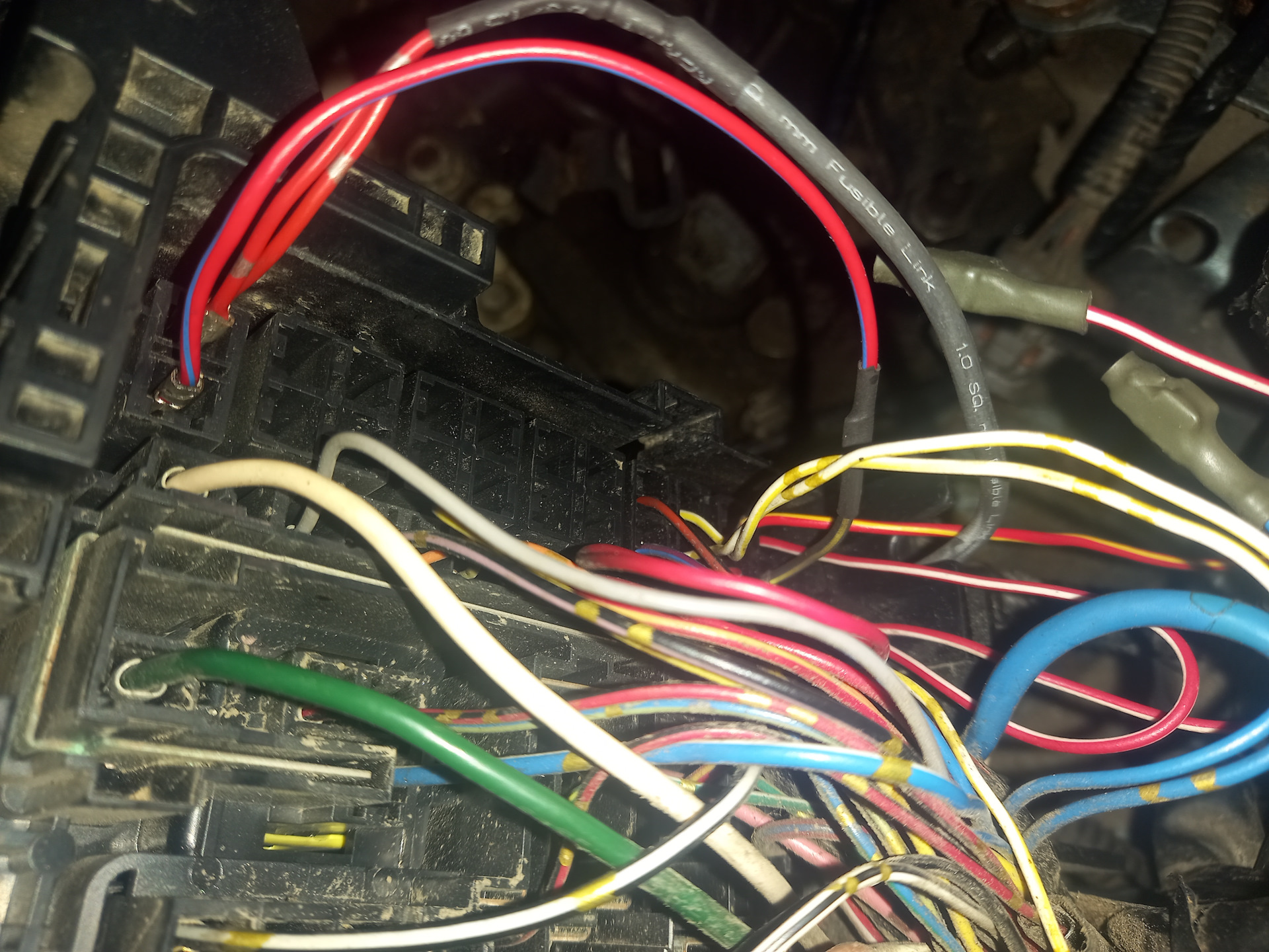 "Кольцо" прикрутил к гайке болта, который держит плюсовую шину от акб с внутренней стороны блока, а второй конец этой перемычки вставил в гнездо резервного преда "музыка" в ряду релешек (он самый крайний ближе к салону). Вторую перемычку вставил одним концом в ответку гнезда "музыка", вторым к силовой ноге релешки туманок в моем случае это пин, куда был воткнут второй проводок от штатного преда туманок. Провод на стекло воткнул вместо двойного синего.
