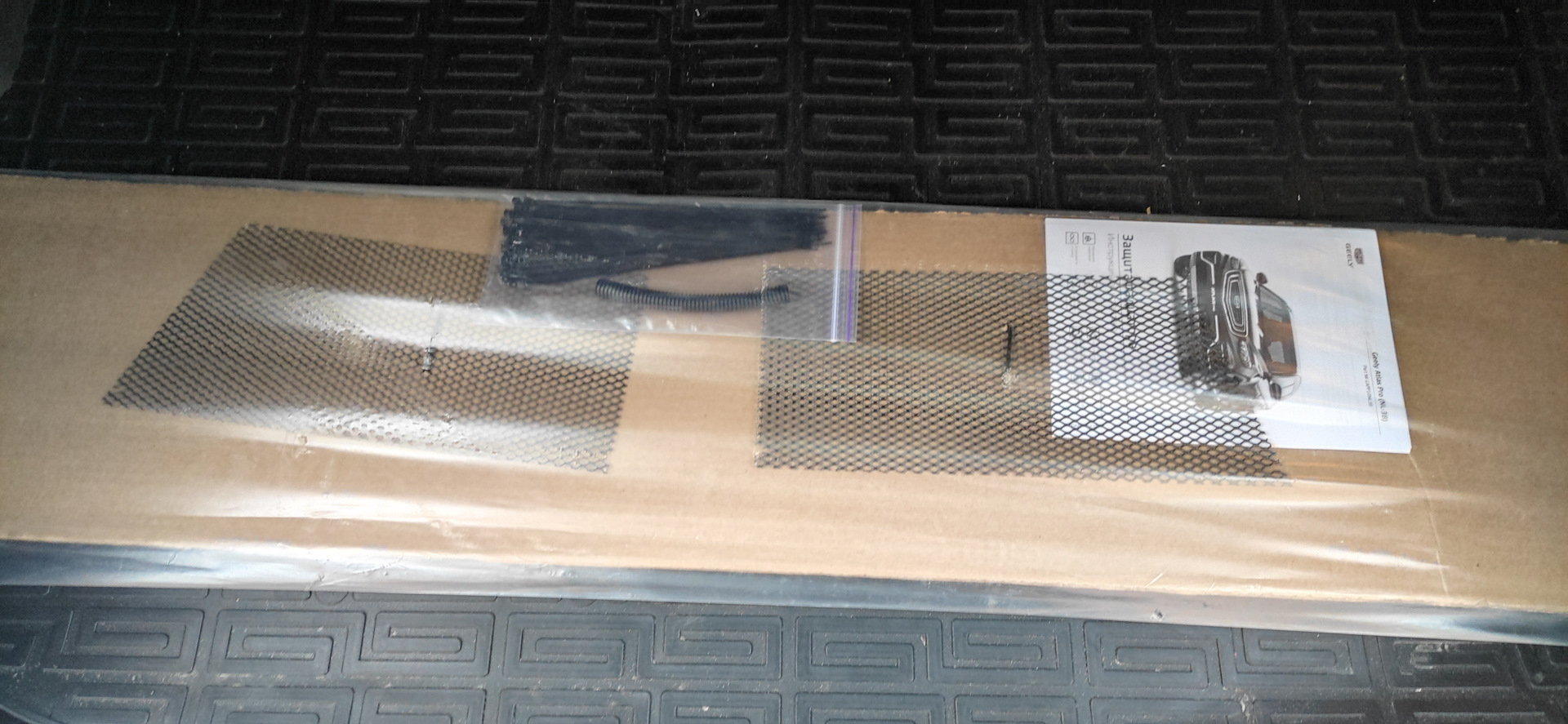 Кусок картона, пачка стяжек, кусок гофры и да, сетка с авторынка ценной в 500 рублей, нарезанная в размер или нет ещё предстоит узнать. До покупки найти какую либо информацию, а так же вид детали на атлас про невозможно, машина ж новая.