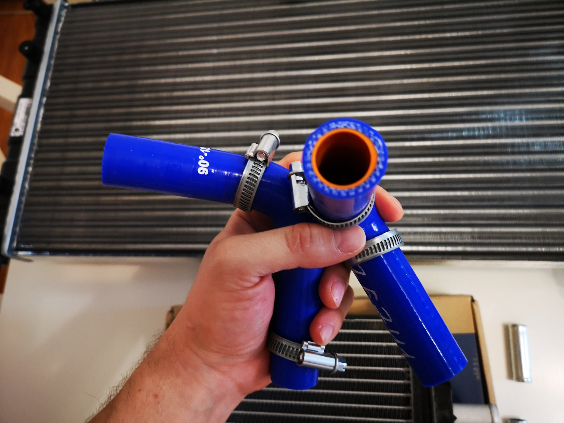 Купил в местном автомагазине 90 градусные силиконовые отводы, хомуты и соединители на 18мм для шлангов,