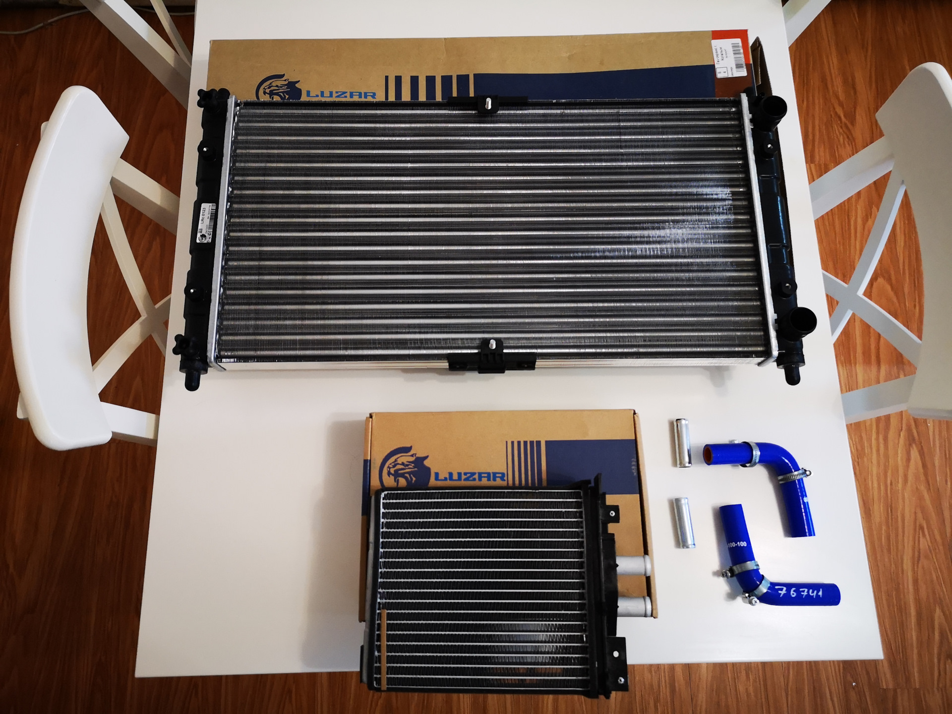 Шнива у меня с кондиционером. Варианты снимать всю торпеду или изучать все позы камасутры, ломая фаланги пальцев в 10 местах, чтобы как то пролезть руками и вытащить сток радик печки, не снимая испаритель, и поменять сток радиатор отопителя на такой же не надёжный — мне радости не доставляла. Поэтому я пошёл по самому простому пути — пути тюнинга, а именно взял радиатор Luzar от приоры, которая идёт с климатисеской установкой Panasonic,