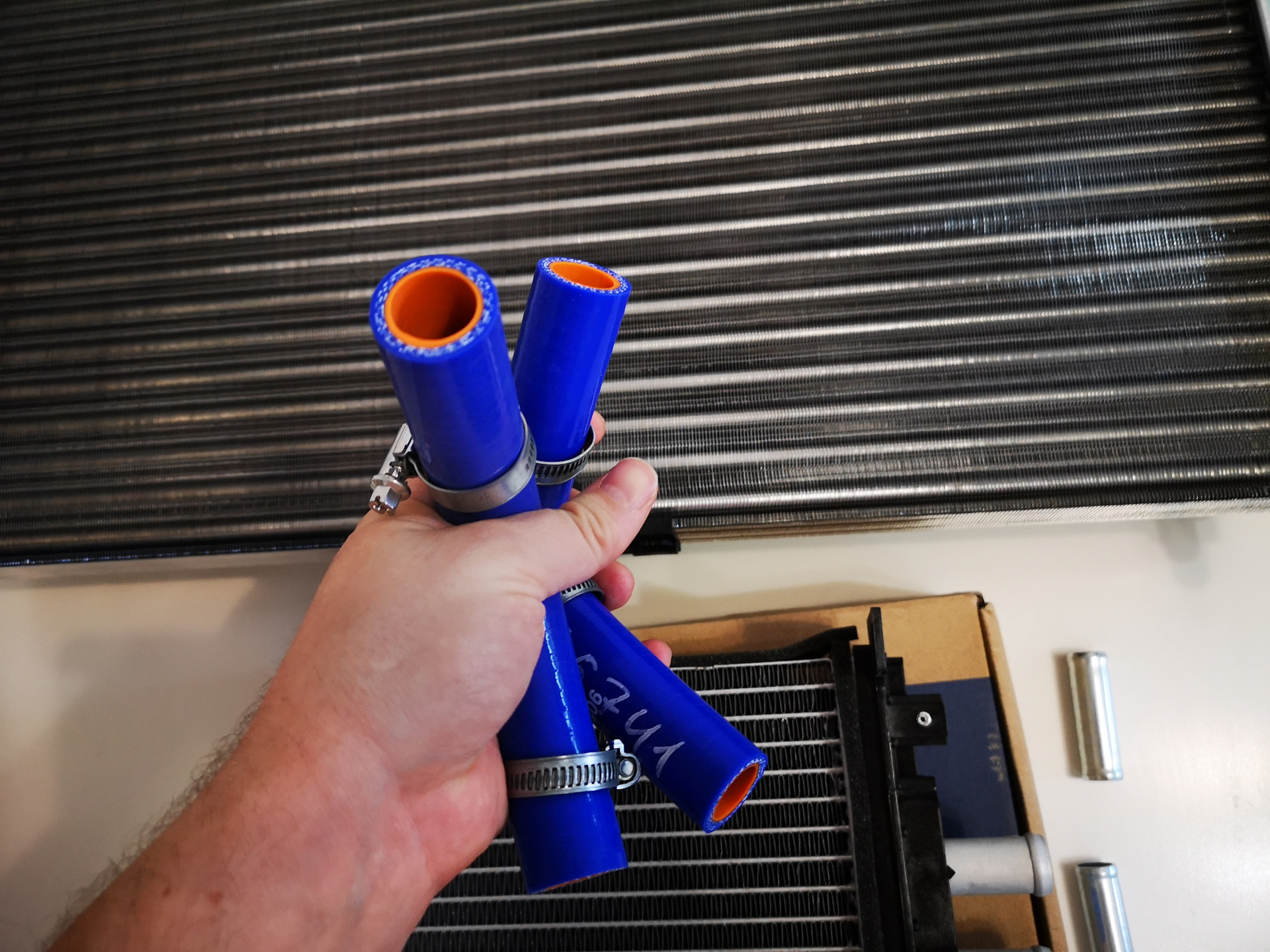 Когда патрубки будешь натягивать на радиатор от приоры будь осторожней, т.к. трубки из радиатора не пропаяны а завальцованны. Пару раз шевельнешь и потечет. Я аргоном проварил соединения.