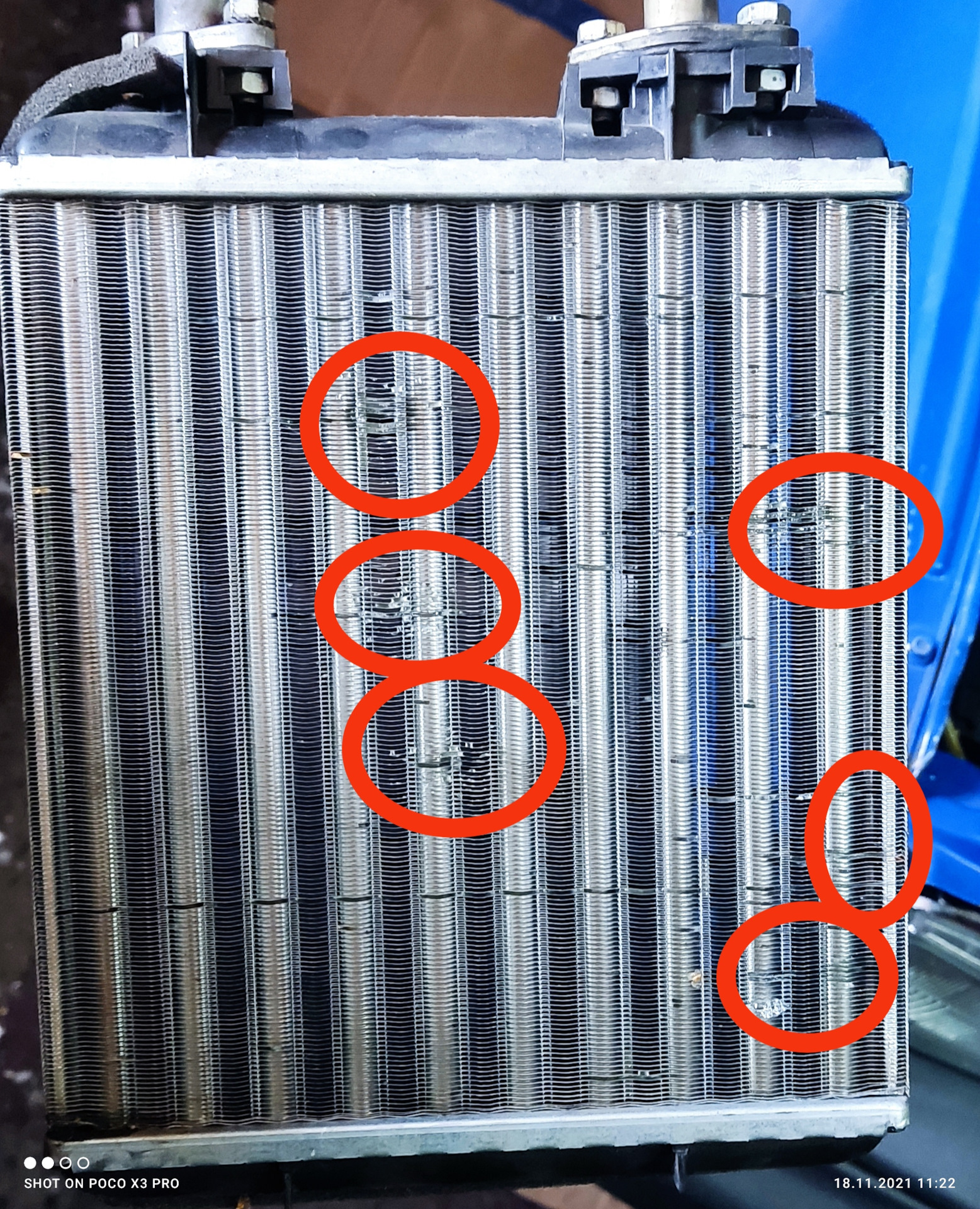 со стороны облицовки воздуховод у ног водителя, где печка — ковролин то же сырой, ну вот страшный сон шнивовода превратился в явь и это ещё зимой, в морозы…😔 Радиатор прожил всего лишь 9,5 лет и потек😑