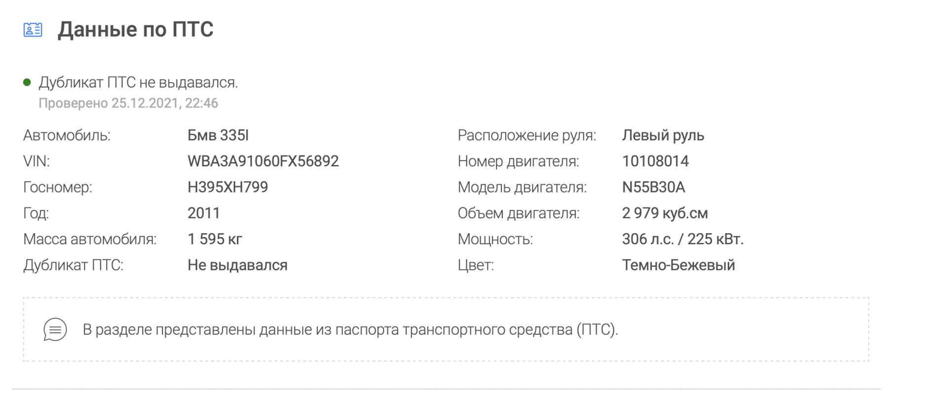Номер ТС и VIN номер