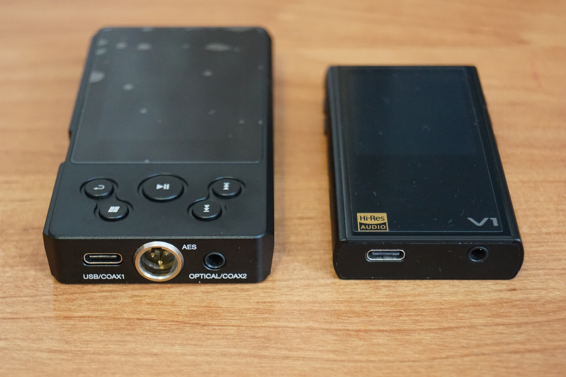 Tempotec V1-A — почти то же, только с ЦАП от Asahi Kasei AKM4377ECB. Его можно использовать напрямую с проводными наушниками через Jack 3,5. При подключении к компьютеру, может использоваться в роли внешней звуковой карты, USB ЦАПа. Причем на аналоговый выход заявлены DSD 256, PCM 384kHz/32bit. Аккумулятор 1200 мА/ч, ценник на новый в районе 9k.