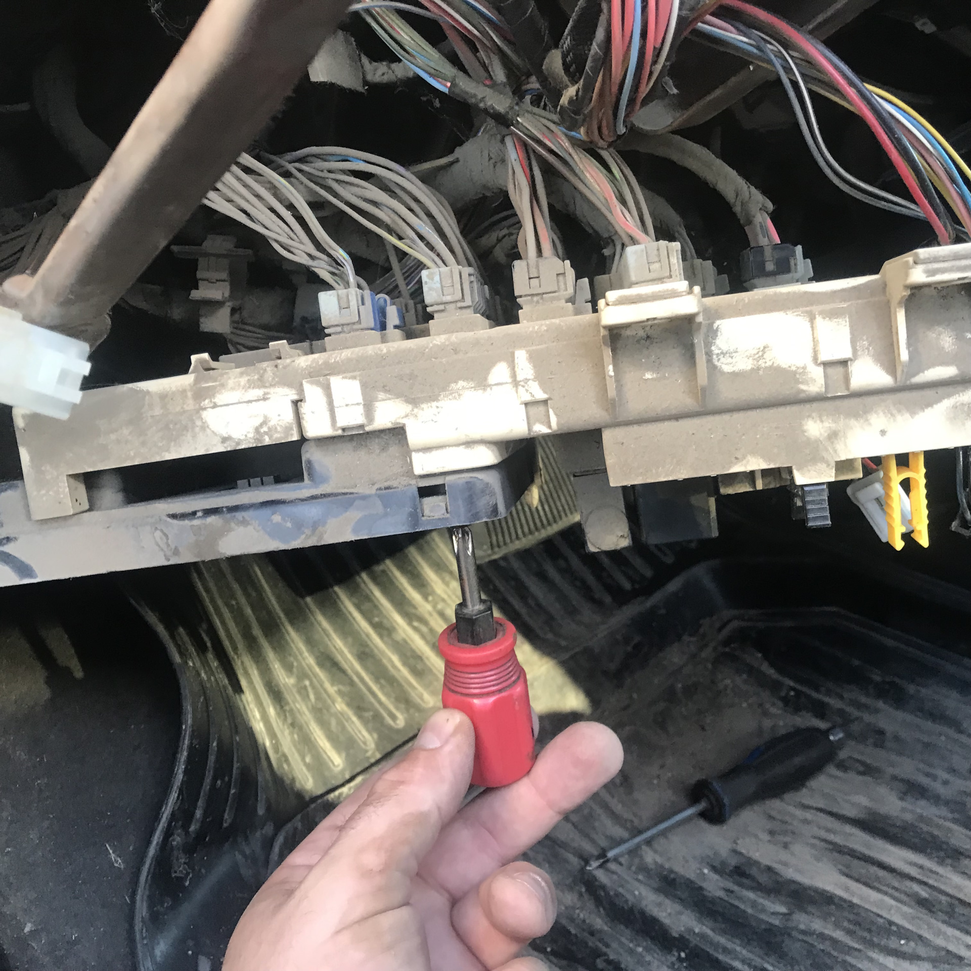 Отсоединил нижнюю часть торпеды для лучшего подхода к блоку предохранителей