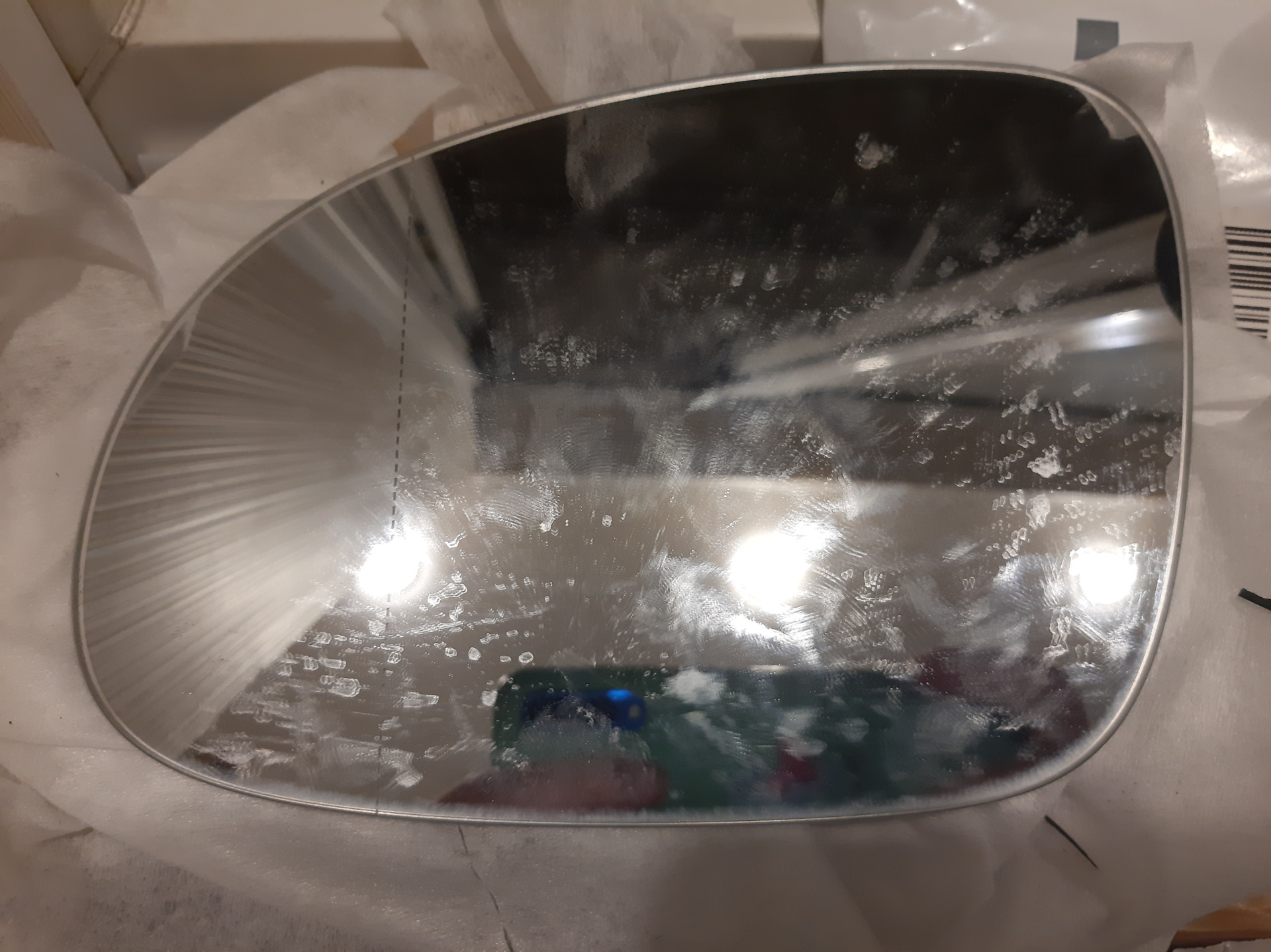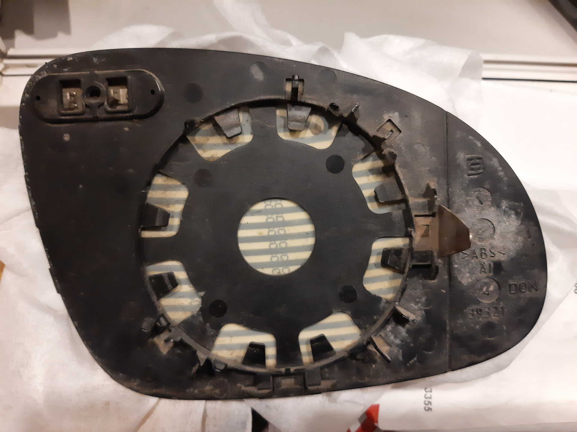 Снимаем несущую пластину, отсоединяем проводку подогрева и идем домой. Тщательно отчищаем зеркальный элемент и несущую пластину от грязи и старого клея. Я использовал обезжириватель и вайтспирит.