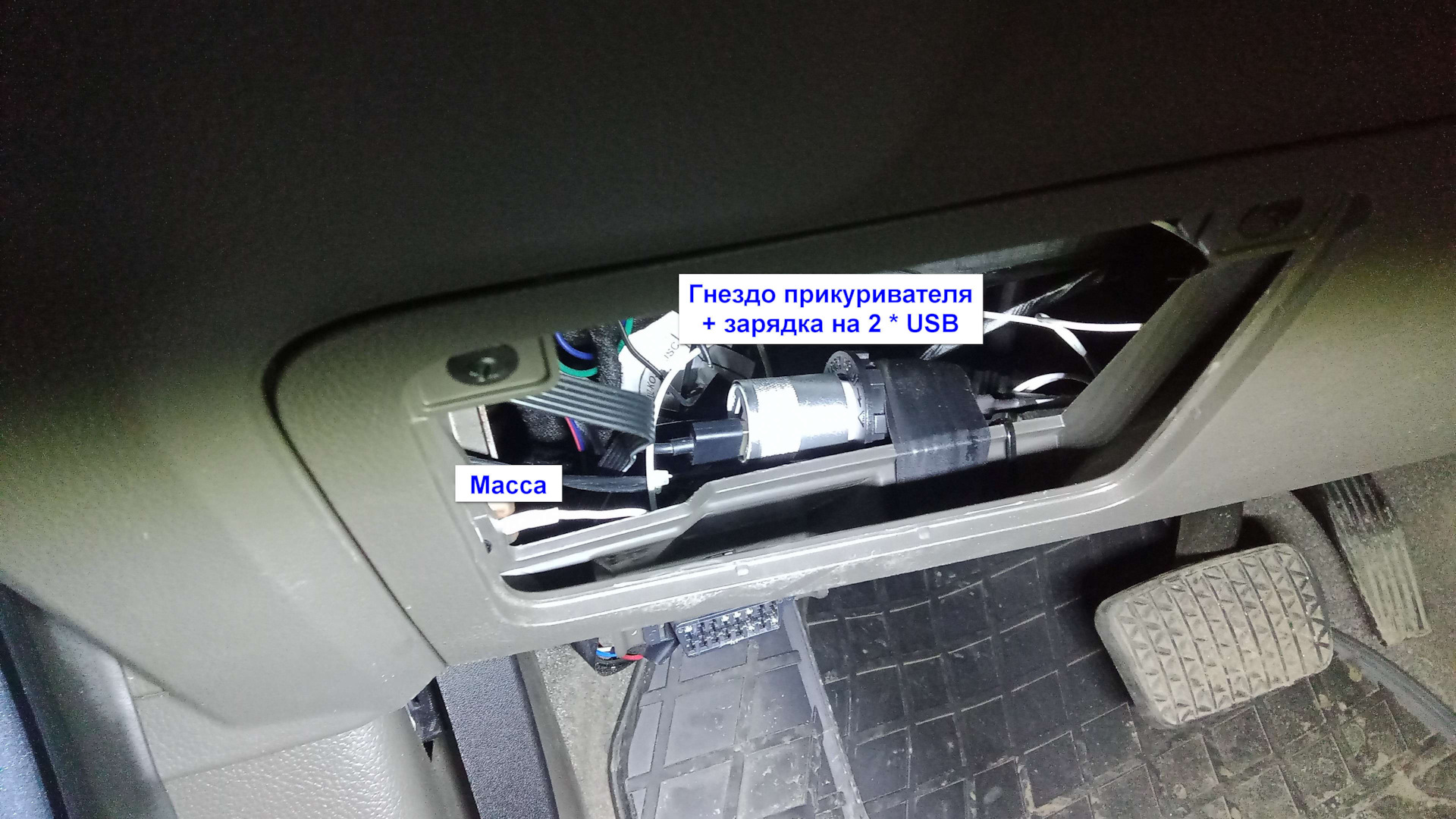 Под торпедо прихренячил синей черной изолентой приехавшее с Али гнездо прикуривателя и преобразователь на 2 USB порта.