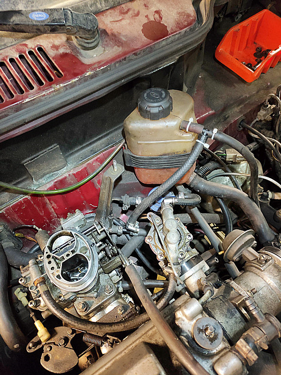 Эмульсионные каналы просверлил по прокладке, в канал подогрева забил кусок 6мм тормозной трубки — через нее тосол и потечет. Алюминиевой такого диаметра не нашел, ну и ладно — там сухо, не должно сожрать. Врезался с этим делом в сливной шланг подогрева коллектора, в верхней точке получившейся ветки пришлось врезать тройничок — развоздушку. Иначе не текло ни фига т.к. вход и выход сильно ниже.