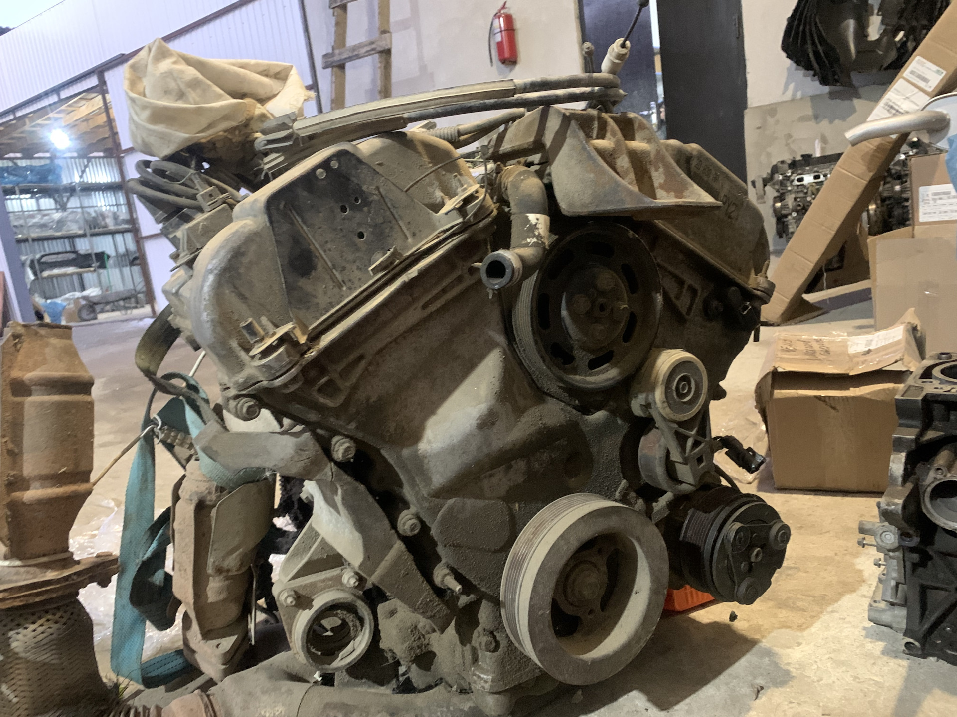 Доброго времени. Как некоторые может знают, с долгих времён (как купил авто) я искал двигатель 2.5 duratec v6 на свой Mondeo 3. Наведя много справок, пообщавшись со многими людьми, с разных городов, никак не мог найти подходящий во всех смыслах вариант. С момента покупки авто, тот же человек, что продал мне его, сказал, что ему предлагали двигатель неподалёку, но он на тот момент не согласился на покупку из-за цены. Сказал мне самому связаться и пообщавшись договориться на счёт цены, но двигатель был 3.0 v6. Тем же вечером связались с тем человеком, договорились по цене. Потом я начал интересоваться у всех, есть ли возможность без заморочек и трат установить 3.0 вместо 2.5. Все в один голос сказали, что много переделок придётся сделать в связи с этим, начиная от проводки, заканчивая коробкой и подпанельной проводкой. Прошло почти полгода и я всё же решился на переделки и снова связался с человеком, который продавал двигатель 3.0. Переспросил его на счёт объёма и знаете что? Он говорит, что приезжали люди на 3.0 двигателем, но оказалось, что это 2.5. Представьте! На нём не было впускного коллектора и из-за этого не было понятно. Вчера поехал за ним, заплатил, загрузил и отвёз к знакомому на осмотр и установку. Я просто не нарадуюсь никак! АЛХЬАМДУЛИЛЛАХI! Будем посмотреть что из этого получится.))