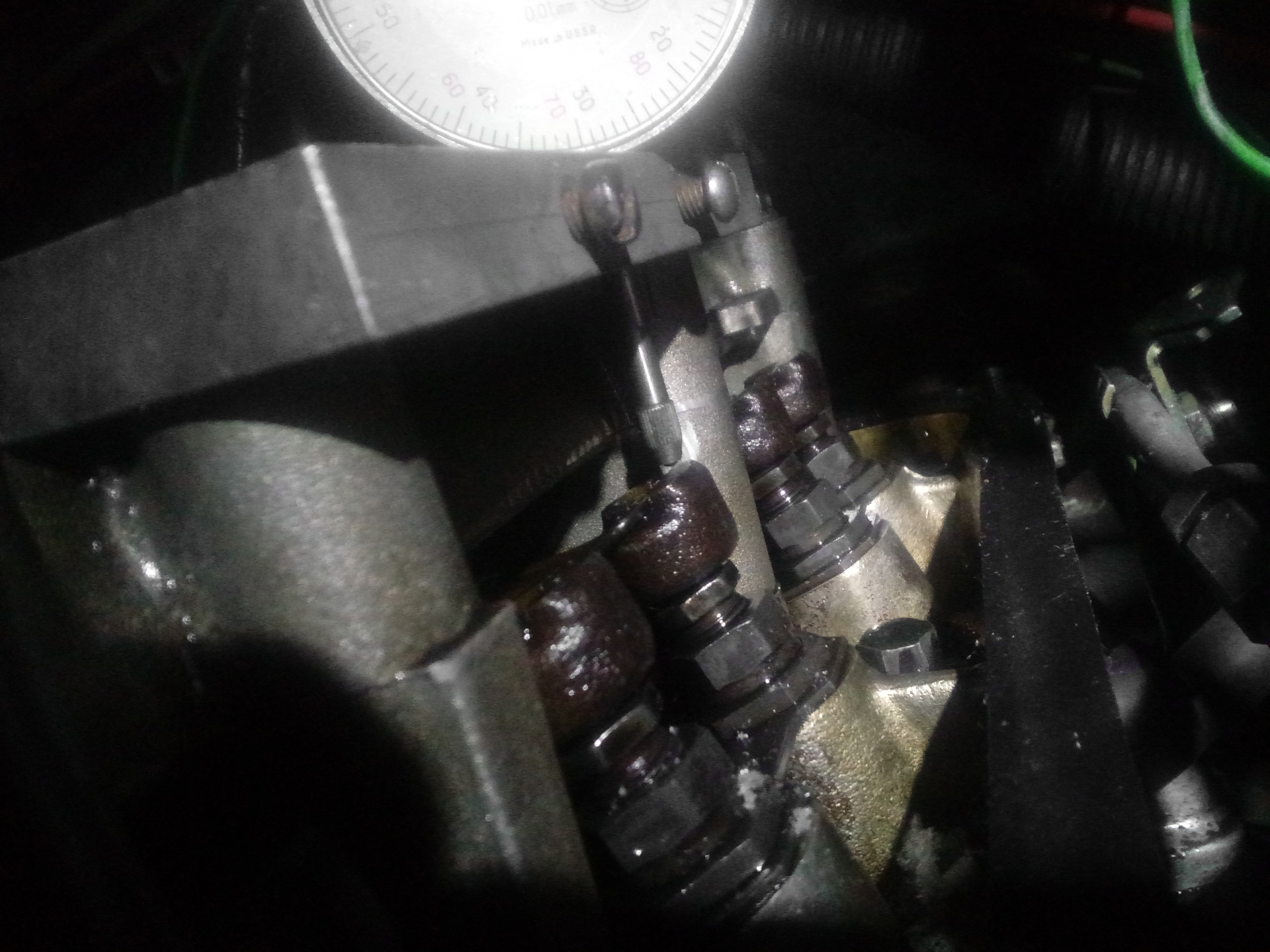 В результате клапана регулировал по старинке — щупом. 4 был чуть поджат, 6 и 7 пришлось подтягивать. Вероятно летом, когда менял ГБЦ перетянул 2 и 5, а может и 6 гайки постели, отсюда и клапаны сплясали и задиры на шейке в этом месте.