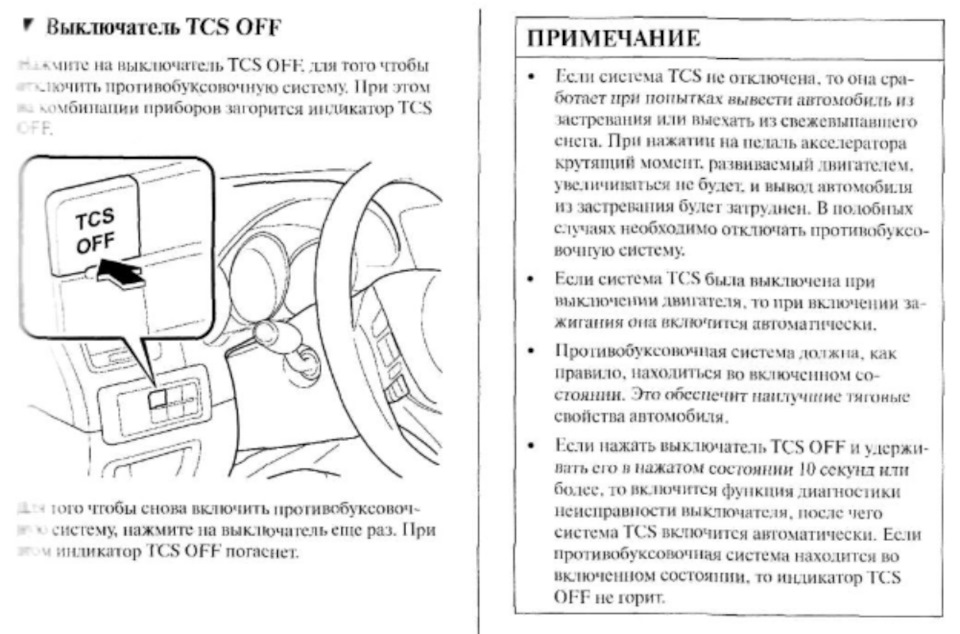 В Инструкции по эксплуатации Mazda CX-5 написано следующее (выдержки из инструкции по системе TCS):