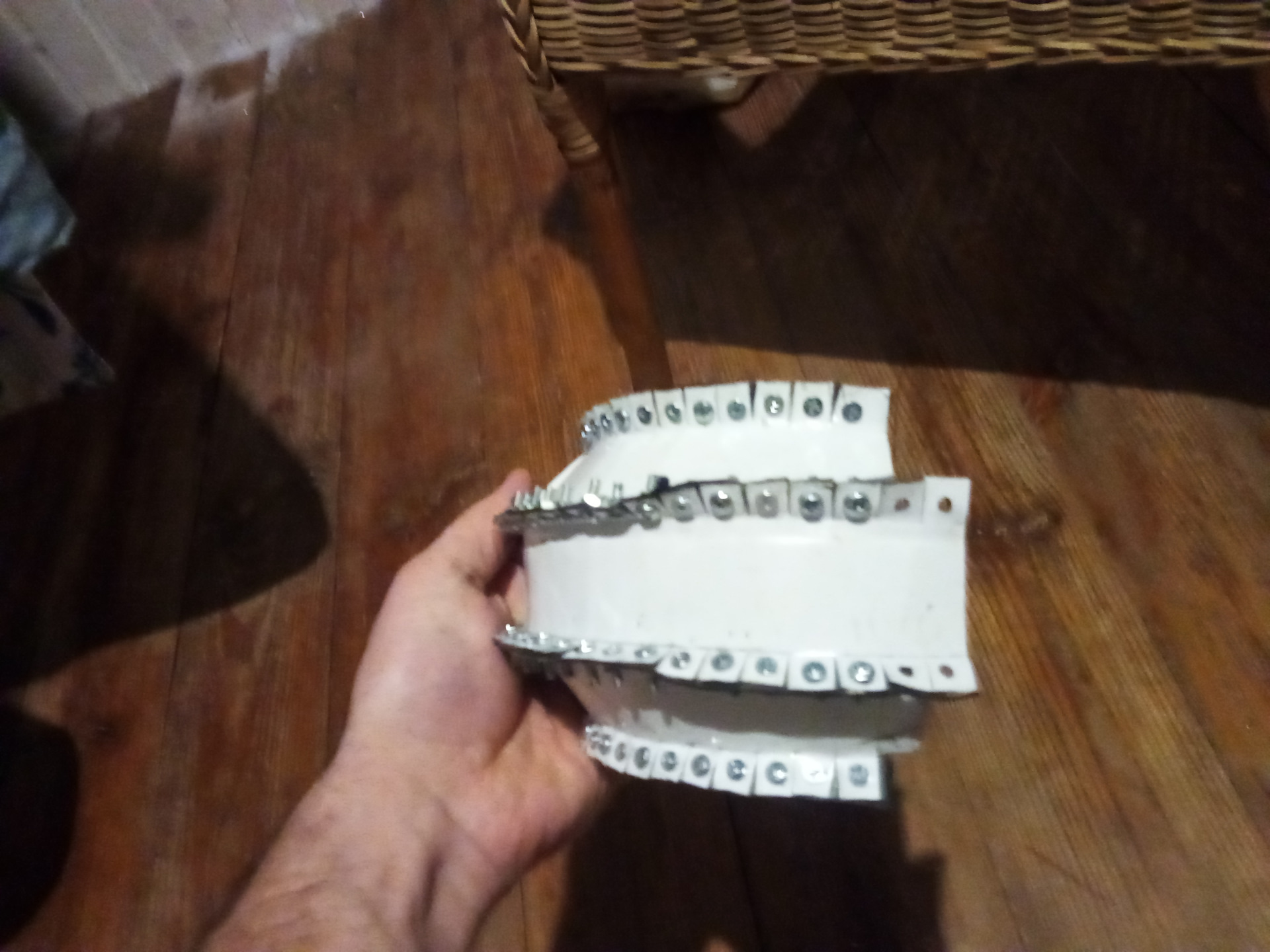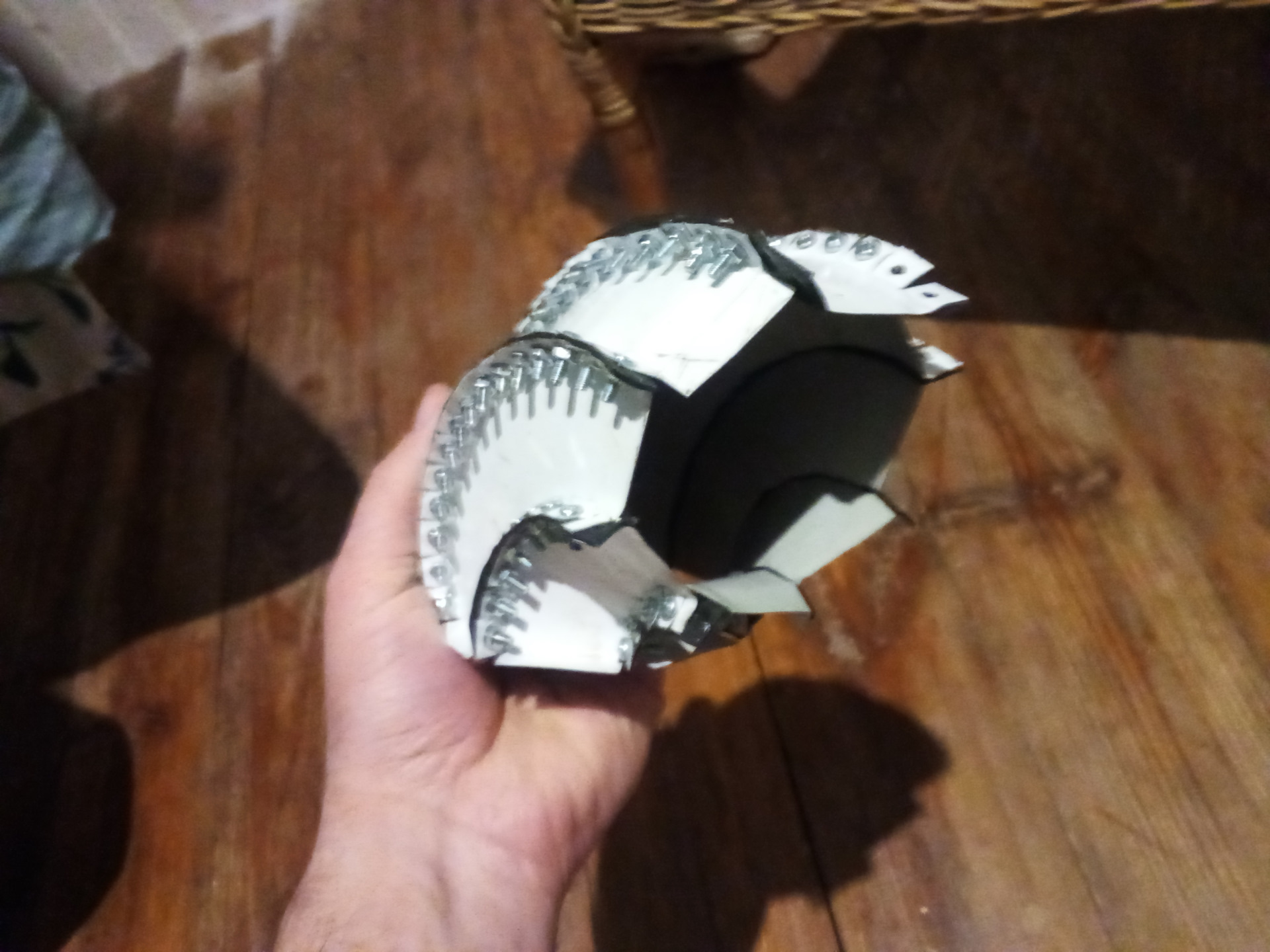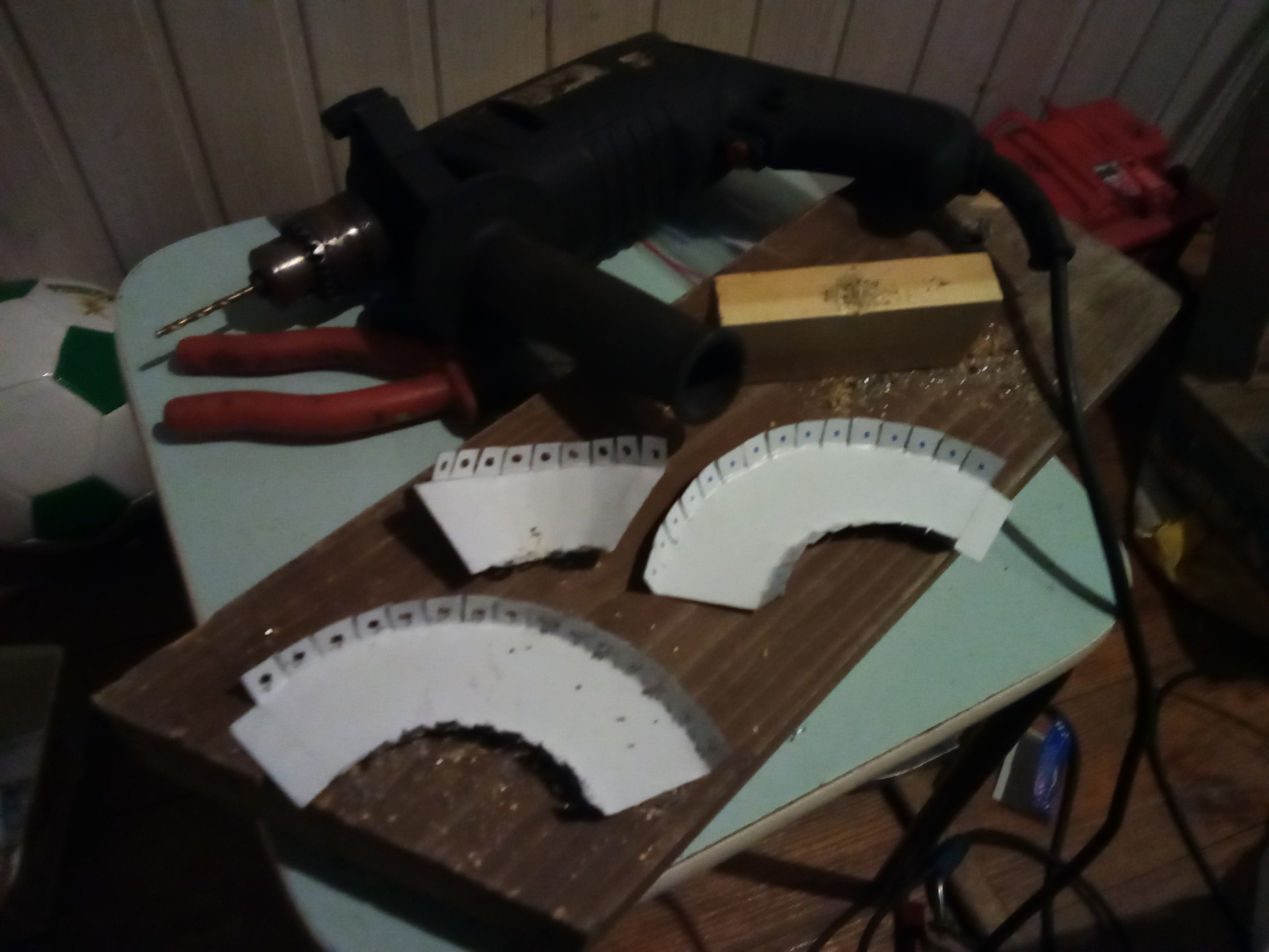 Стал делать в металле. Сами сегменты собираются на винты М3, в общей сложности ушло почти 100 винтов, шайб и гаек. В стык деталей для герметизации проложен двусторонний скотч. За счёт скотча и того, что листы металла толще бумаги, реальный диаметр получился больше расчетного, но не намного.