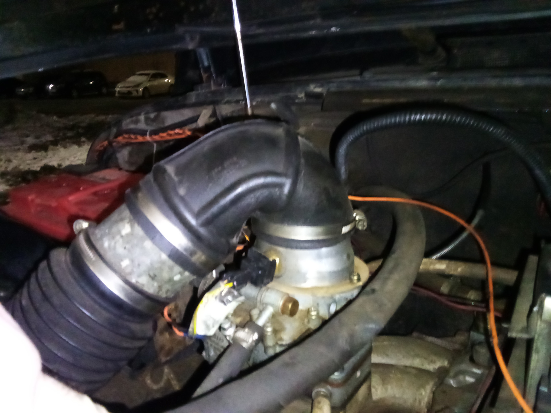 А установленный год назад карбюратор дааз 4178 в сборе с алюминиевым горлышком ещё выше карбюратора к-126, что приводит к тому, что резиновый уголок начинает не только провисать, но и поджиматься капотом. Напомню, машина у меня без бодилифта.