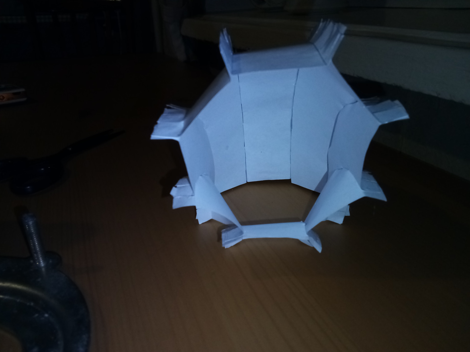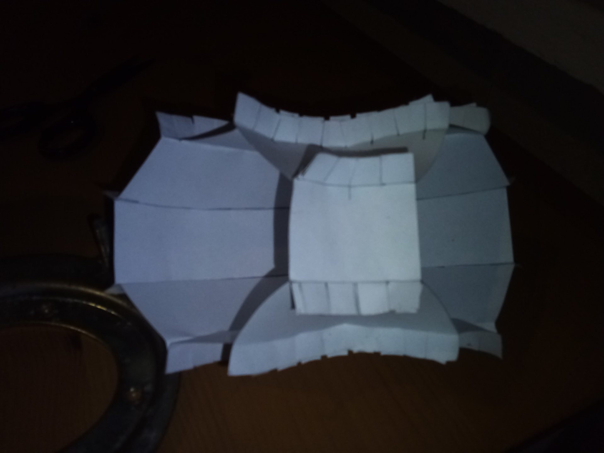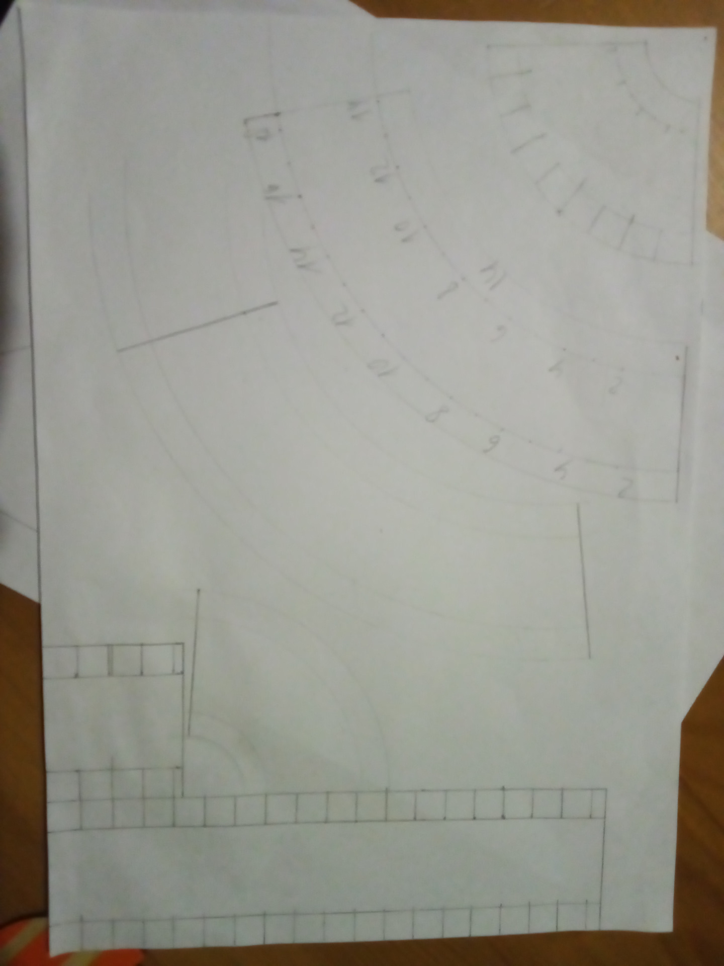 Решил, что труба будет в виде восьмигранника сечением. Первоначально начертил на бумаге и попробовал бумажные заготовки склеить, вышло удачно и как раз требуемого диаметра, а точнее, длины периметра поперечного сечения.
