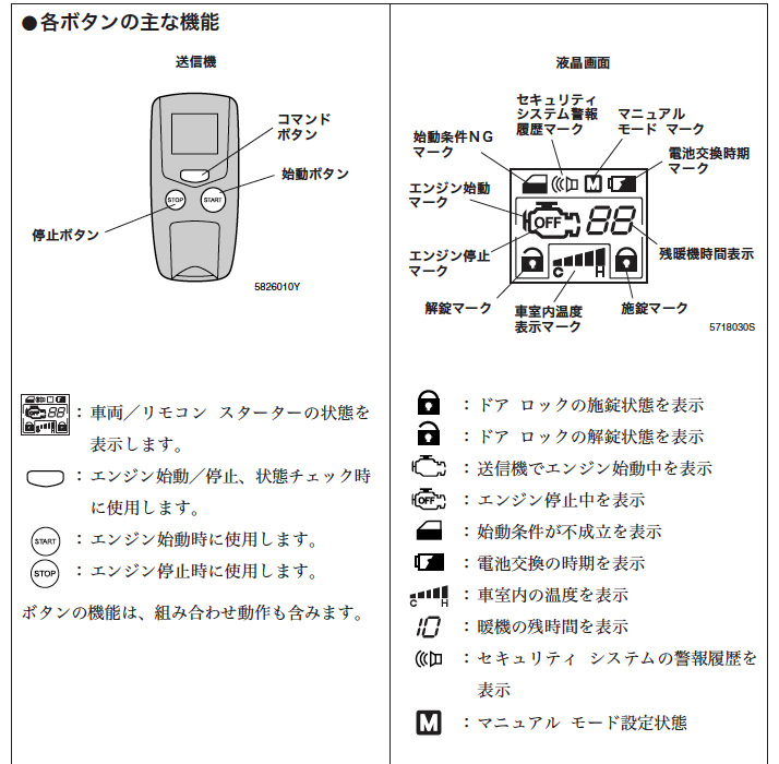 1. Есть 2 типа брелков, один с кнопками Stop/Start, другой с Замками.