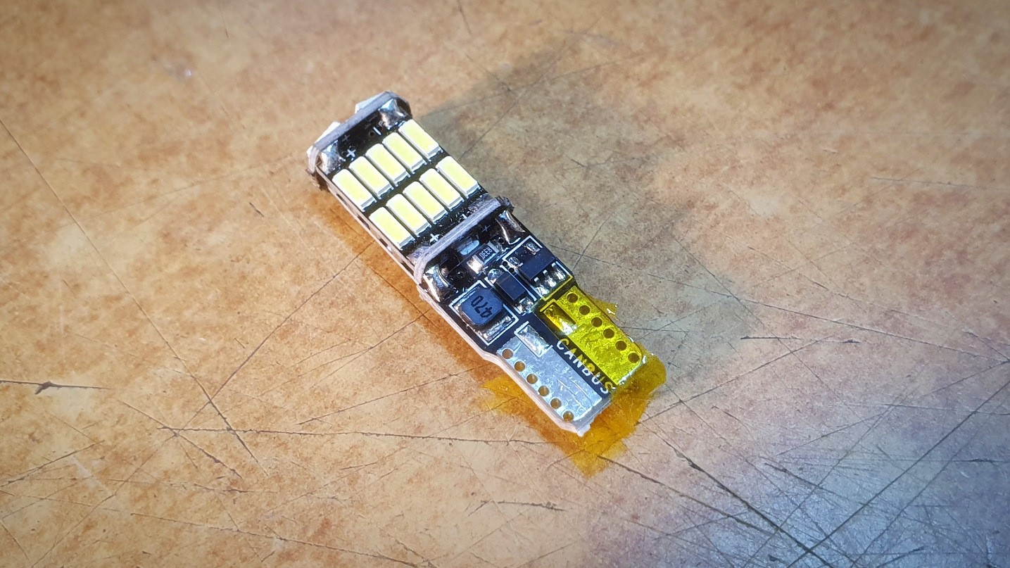 (Если кто то решит поставить такие диоды в подсветку номера, то необходимо заклеить на лампах по одному контакту, иначе будет замыкание, лампы не будут светить и возможно сгорание предохранителя, блока комфорта и т.д.)