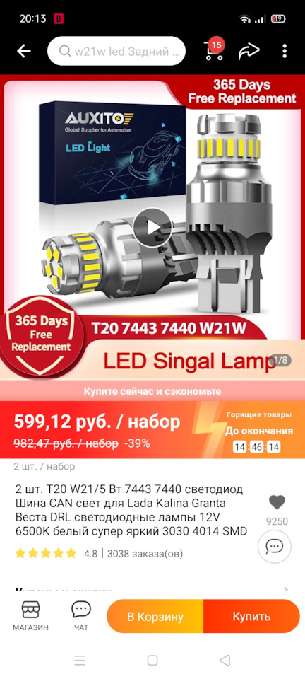 А подсветку дверей, бардачка и багажника я хочу белую и яркую. Заказал светодиодные лампы. Цена за 6шт. — 428,43 руб.