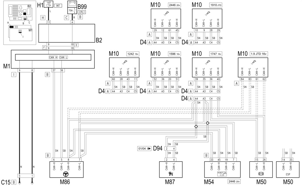 Берём мультиметр с прозвонкой и проверяем проводку на участке M50 — D4A — M10 по пинам, указанным в схеме.