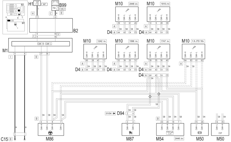 Скорее всего, нет связи по кан-шине. Блок абс (М50) связывается по кан-шине с ЭБУ двигателя (М10) через разъём D4A под блоком предов под капотом. От ЭБУ двигателя кан-шина идёт через тот же D4A на электроусилитель руля. Смотреть надо участок шины M50 — D4A — M10, так как если бы на участке кан-шины от ЭБУ до электроусилителя были бы какие-то проблемы, то на связь не выходил бы ещё и ЭБУ.