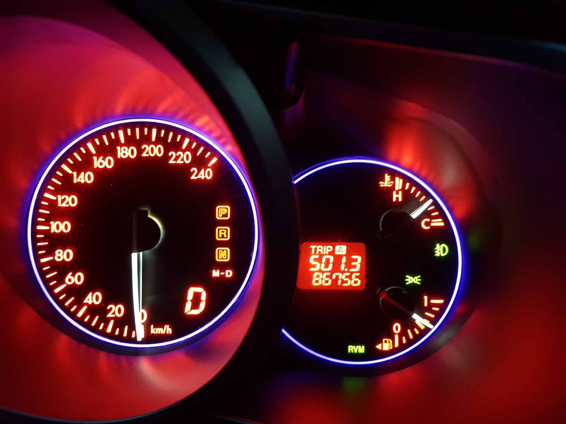Решил, что нужно избавиться от мерзкого красного цвета панели приборов и кнопок салона. Очень режет глаза, особенно в сумерки. Осталось около недели, т.к. сейчас лежу с поломанной ногой и скоро выписываться. Как будет готово, сделаю фото или попробую залить видео. Делать буду не сам, т.к. в электрике не разбираюсь.