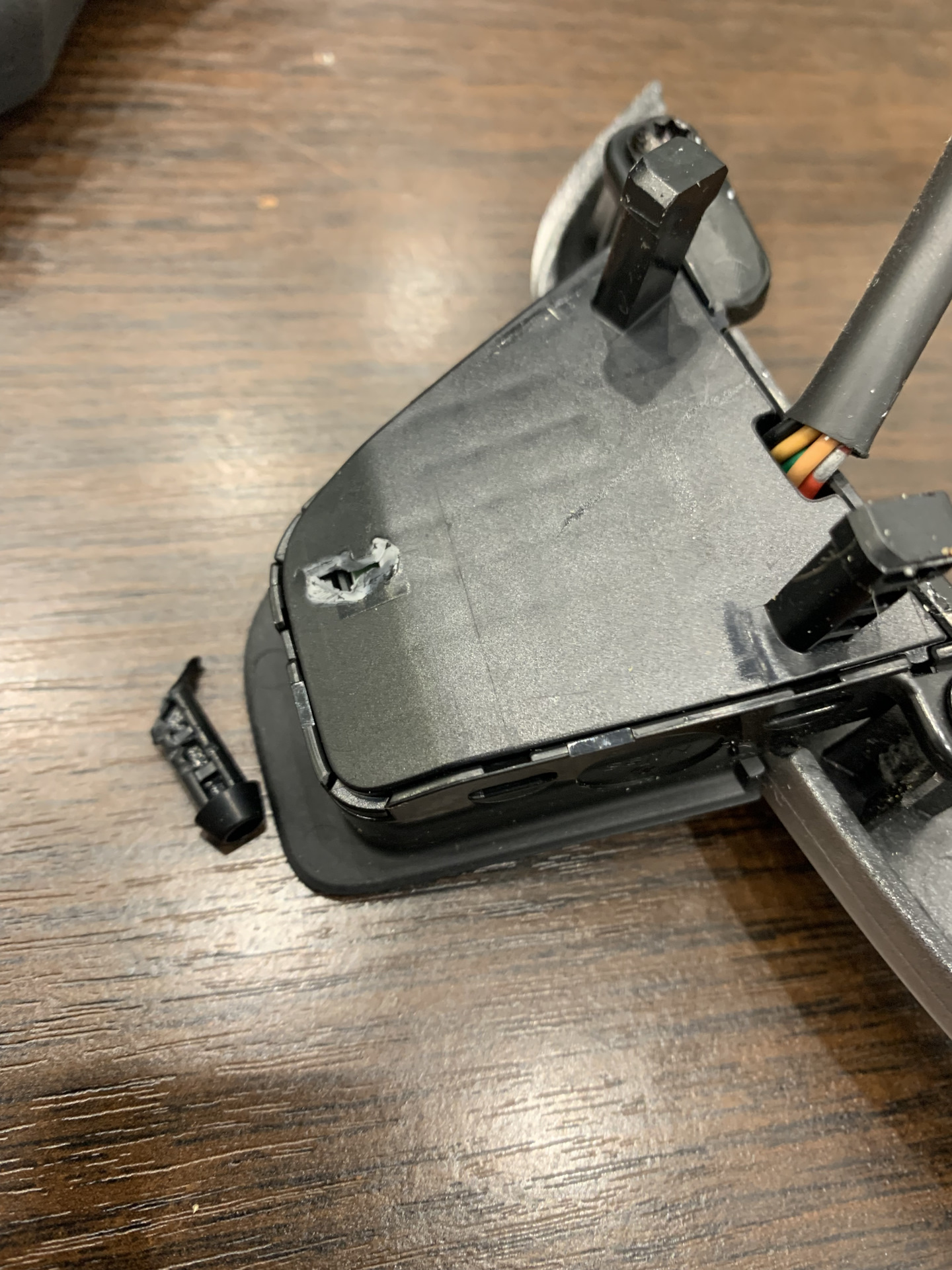 Руль заранее разобрал, естественно сломав две детальки. Старался как можно аккуратнее, но не получилось. Разбирается всё плоской широкой отверткой, плюс два винтика торкс. Отверткой нужно как можно дальше подцеплять кнопки снизу и аккуратно тянуть вверх, тогда ничего не сломается.