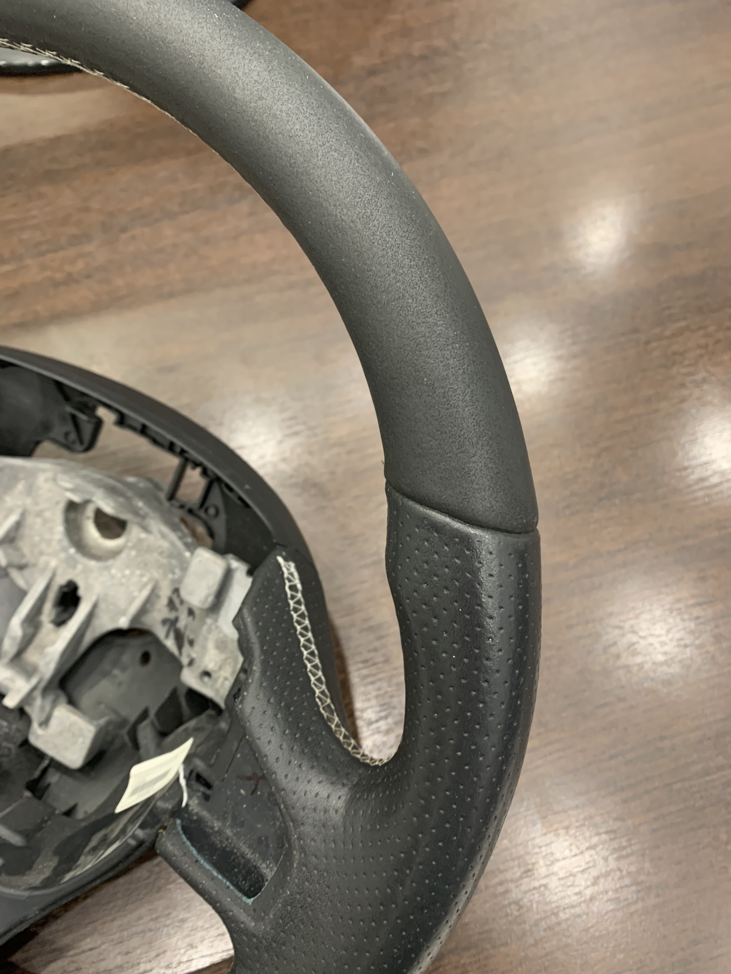 В автоателье взялись за руль без проблем, даже с моим комплектом обогрева, хотя у них есть свои, но дороже. Кожа натуральная nappa, нитка серебро под цвет деталек салона, белая уж слишком яркая. Сделали быстро и красиво. По цене вышло 10000р, но это всё индивидуально, говорят помучались с обогревом, знали бы, взяли больше денег).
