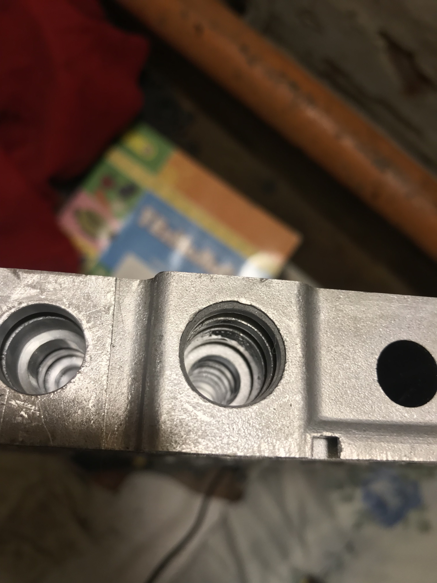 Берём главный гидроблок и разбираем: взял старую тонкую отвертку и загнул конец 5-7мм на 90’, вытаскиваем стопора заглушек клапанов(придерживаем! Может стрельнуть! Клапана ронять нельзя!) некоторые заглушки у меня заклинило еле вытащил с помощью той же 🪛 .