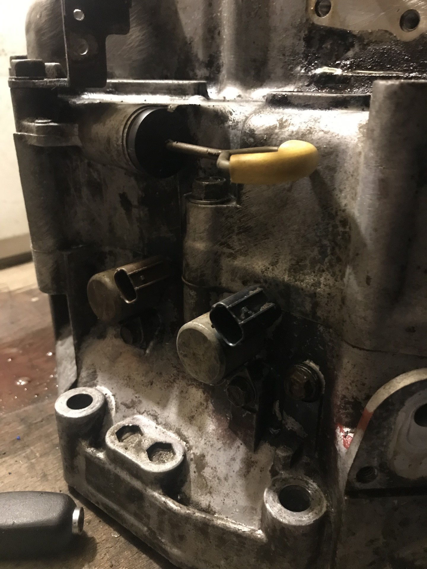 Откручиваем гидроблоки, фоткаем: !особенно где основной, под ним шестерни маслонасоса, поршенек и шарик! В гидроблоках есть 2 сетчатых фильтрика они были забиты в хлам!