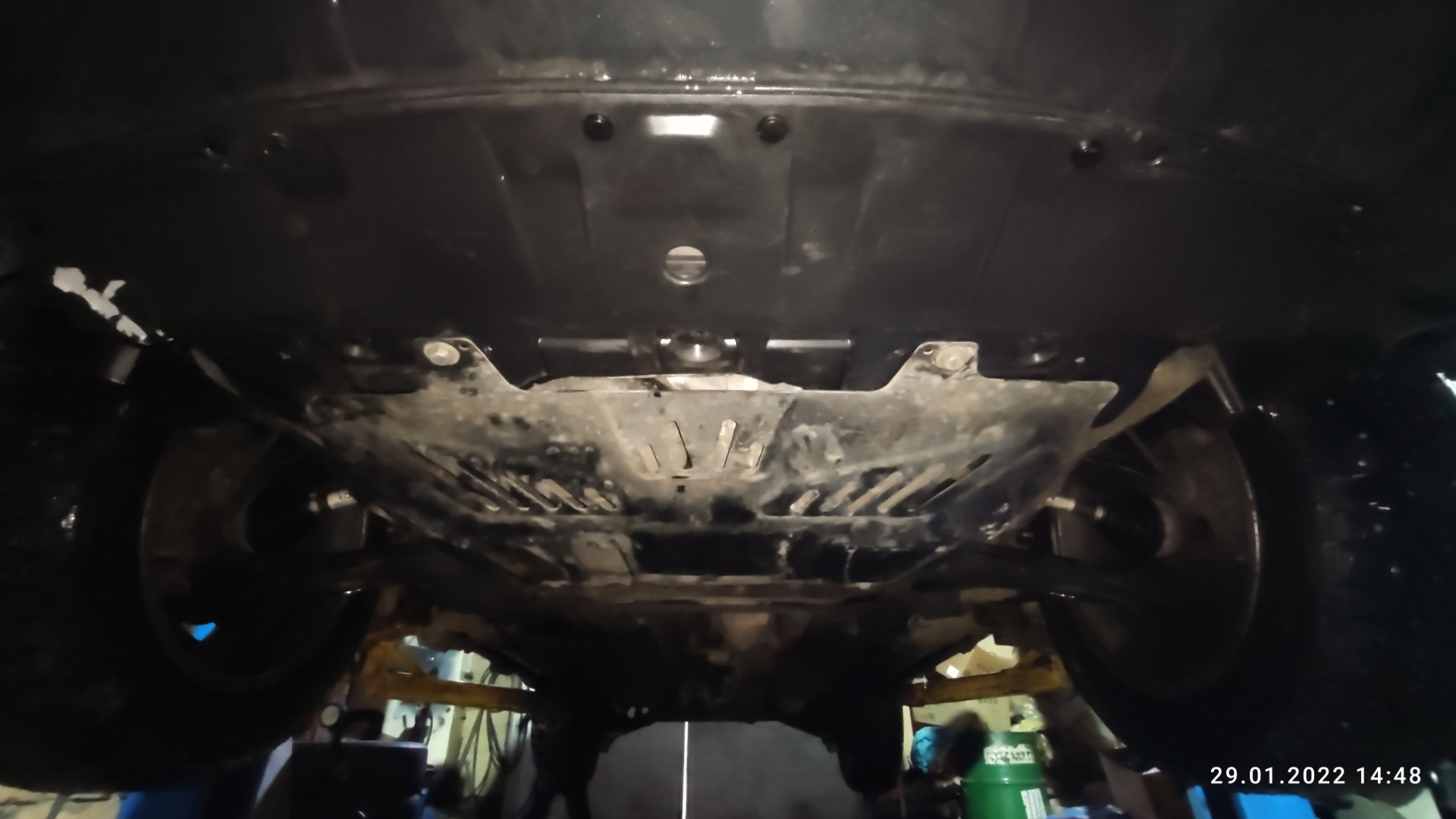 Я не резал защиту просто взял болты М10 длинной 30мм и закрепил металлическую защиту на место