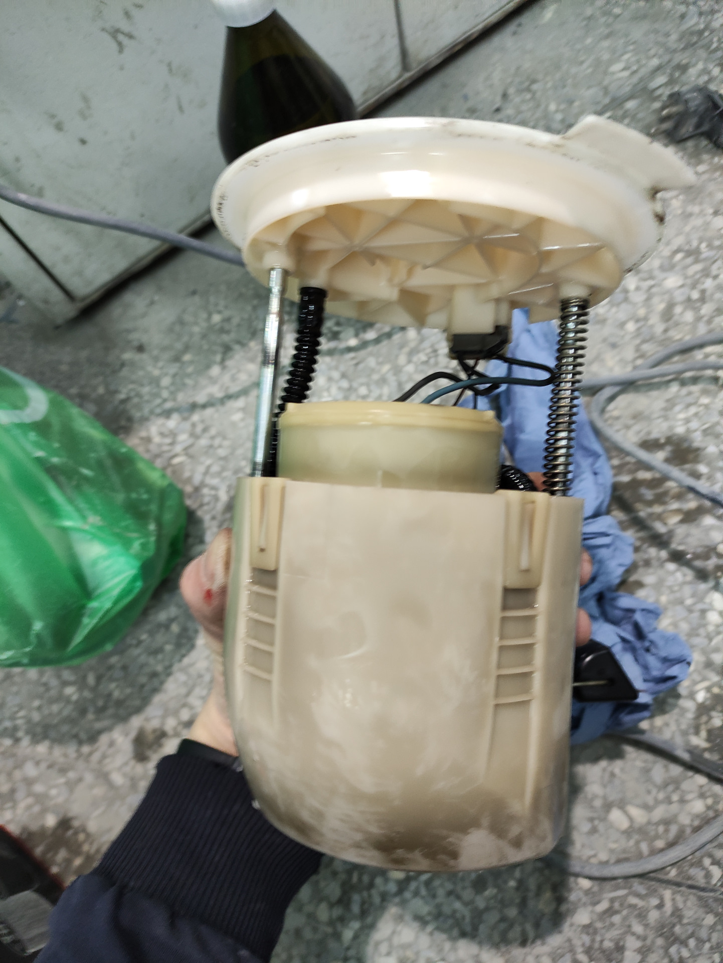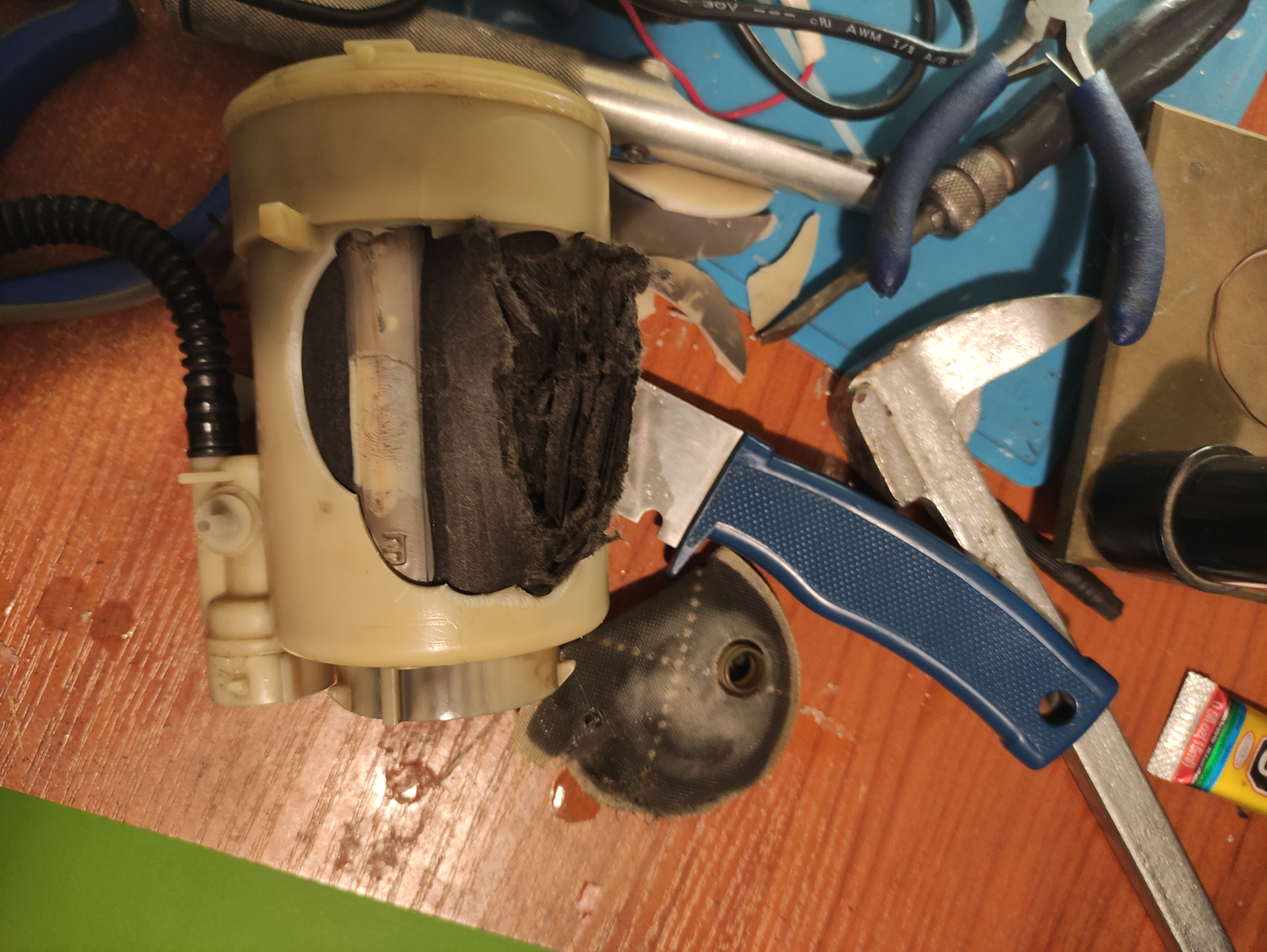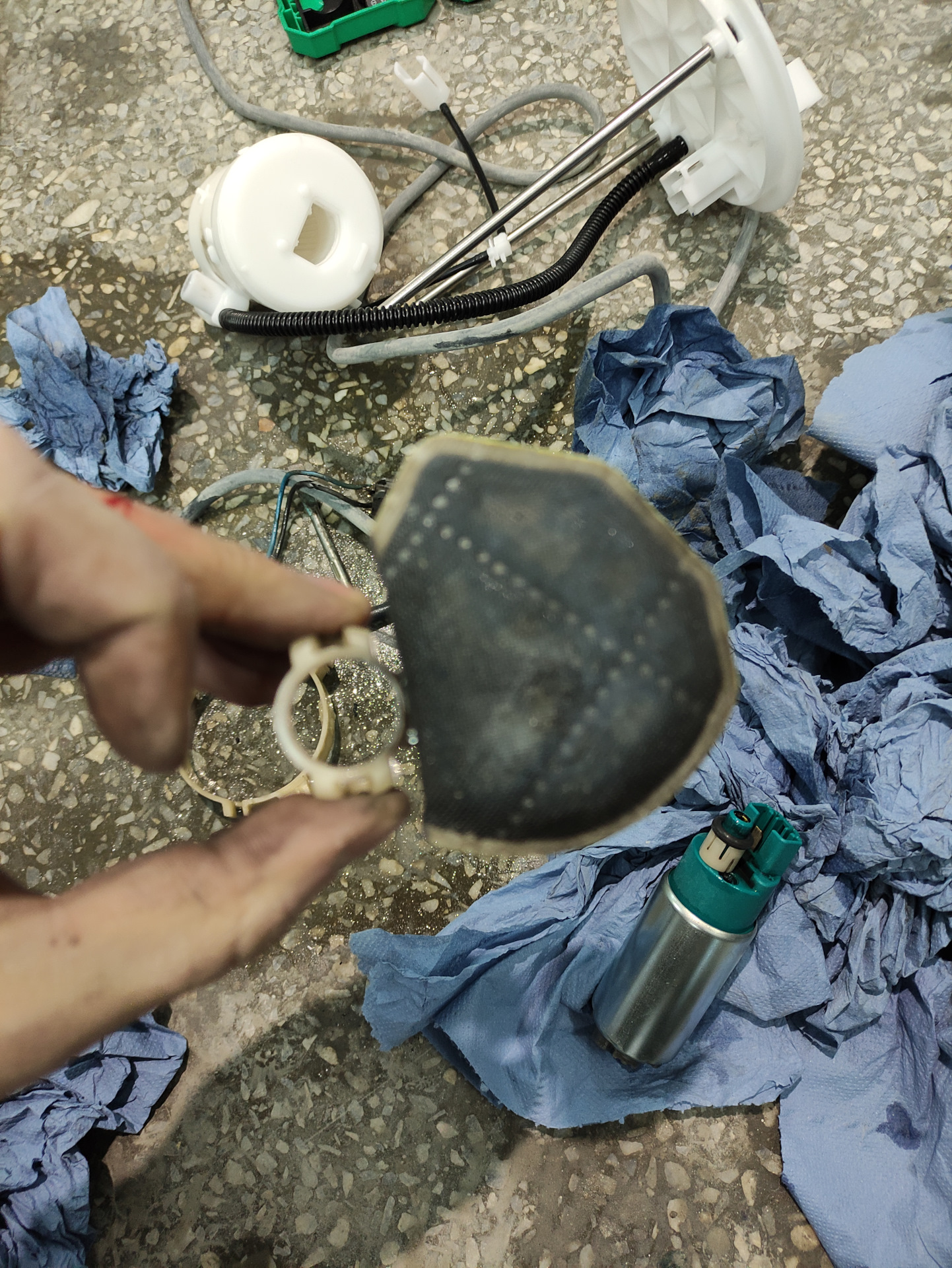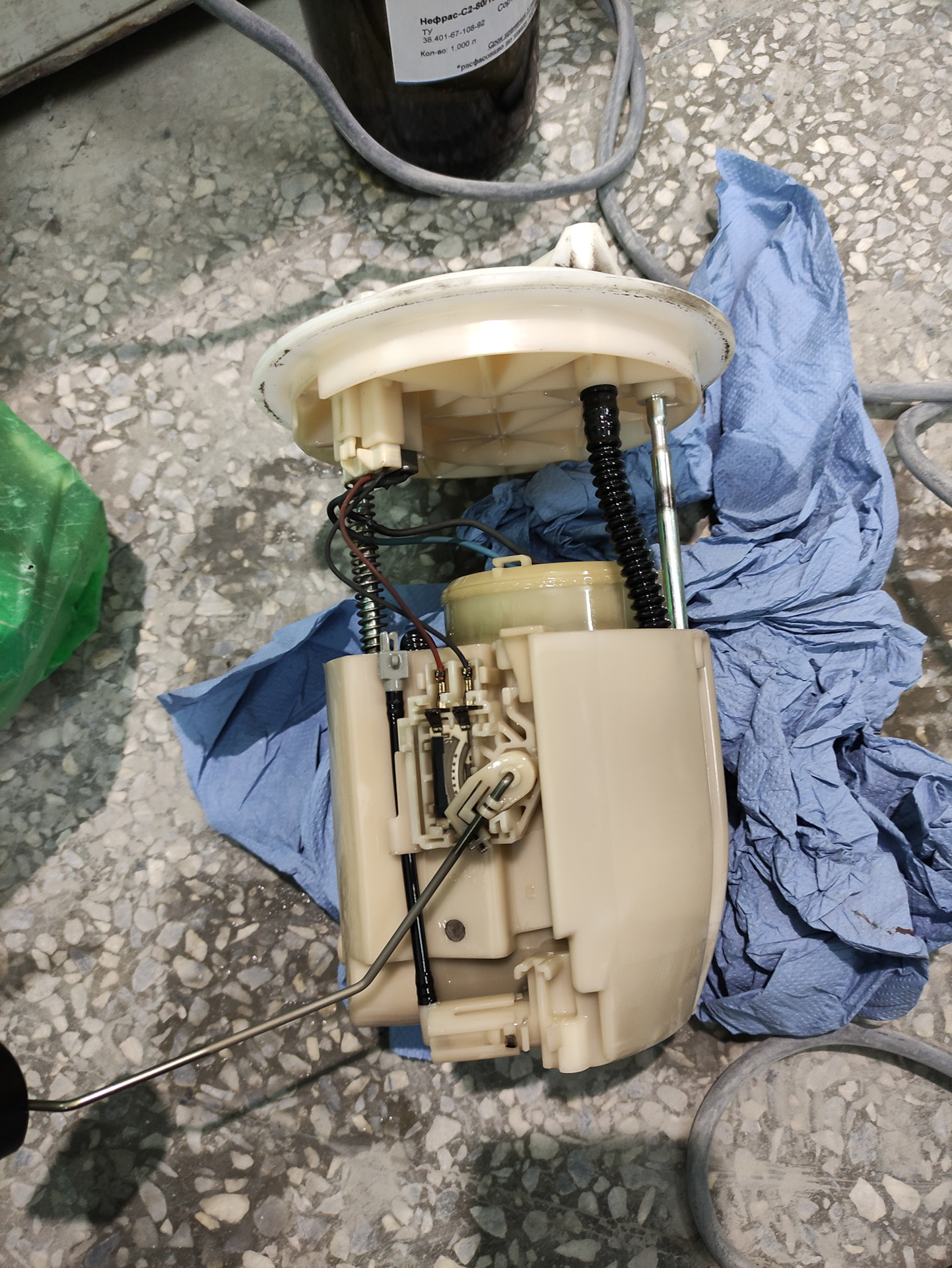 Состояние плачевное, меняем. К слову от нового комплекта подходят, фильтры тонкой и грубой очистки, резиновые колечки, а также шланг подачи толстый гофрированный, все остальное придется оставить родным, для этого необходимо шланг с нового комплекта переставить на старый корпус, а тонкий шланг со старого фильтра тонкой очистки переставить на новый. Переставляются с помощью фена строительного или паяльного, лучше паяльного, температура 230-250 градусов, шланги размягчаются и снимаются. При установке шлангов обратно также нужно хорошенько прогреть их, возможно они не сядут так плотно как раньше и будут как бы прокручиваться (но не сниматься) вокруг штуцеров, это не страшно, под давлением топлива внутри их будет прижимать сильнее.