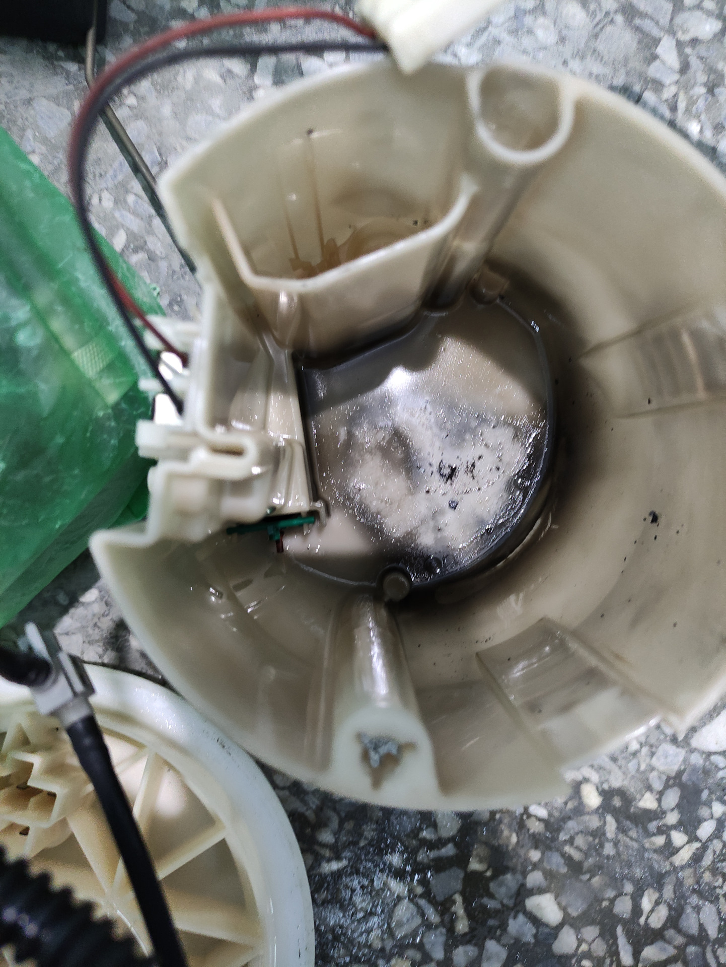 Но самое интересное — это расплавленная проводка и фишка от этой проводки внутри топливной станции.