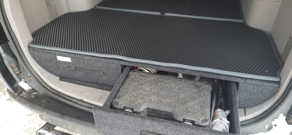 Всем привет. Вместо ящика посередине багажника я сразу же планировал сделать вот так. Дождался акции и сделал себе подарок на новый год) Коврики пожадничал и пришлось уже делать тут по месту) Я доволен, мне нравится.