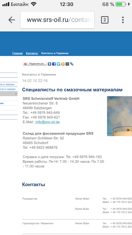 Но вот где купить в Германии? Почему продавцы масел в Германии настойчиво предлагают мне aral, когда я спрашиваю именно srs?