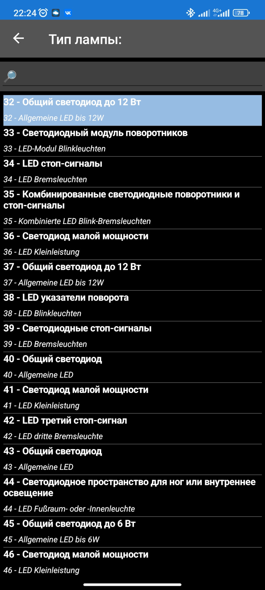 прописал через кар сканер, что стоит общий светодиод 12в