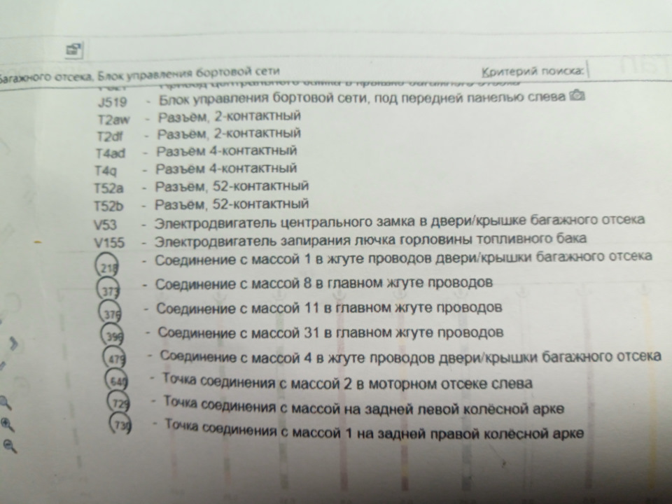 Проблема известная и многократно обсуждаемая. Примерно год назад заметил, что на машине (sharan 7n) перестал закрываться лючек бака. Почитав некоторое множество постов на эту тему разобралсмазалсобрал девайс… Заработало, хватило на пару месяцев. После такого был заказан новый замок . Хочу отметить, что на моем автомобили данная деталь несколько отличается от большинства аналогичных. Она дополнительно выполняет функцию блокировки правой сдвижной двери при открытом лючке бака. 7N0810773D. Когда увидел сколько стоит, чуть в обморок не упал, но нашлась замена с индексом Е, по более гуманной цене. Поменял, заработало, приготовился забыть, но не смог. Прошло полгода и замок перестал работать опять. Немного офигев от надежности конструкции, опять снял замок и для начала подал на него 12 в. Все отлично заработало в обе стороны. Ставлю на место, даже не пытается работать. Проверил тестером и лампочкой, напряжения на контакты фишки не приходят, не уверен, что так проверять корректно. Посмотрел по схеме. Моторчик замка управляется блоком бортовой сети J519. Провода идут на прямую от него. Сегодня планирую прозвонить и попробовать подать напряжение через них от фишек блока… Буду признателен дельным советам бывалых :)